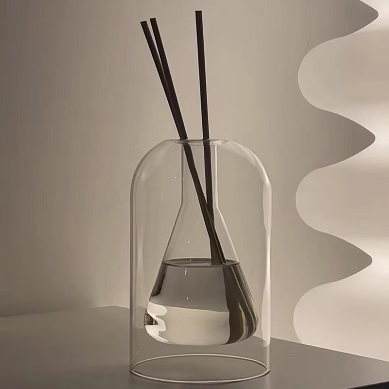简约个性双层玻璃香薰插花瓶日式客厅香氛扩香精油干花瓶厂家