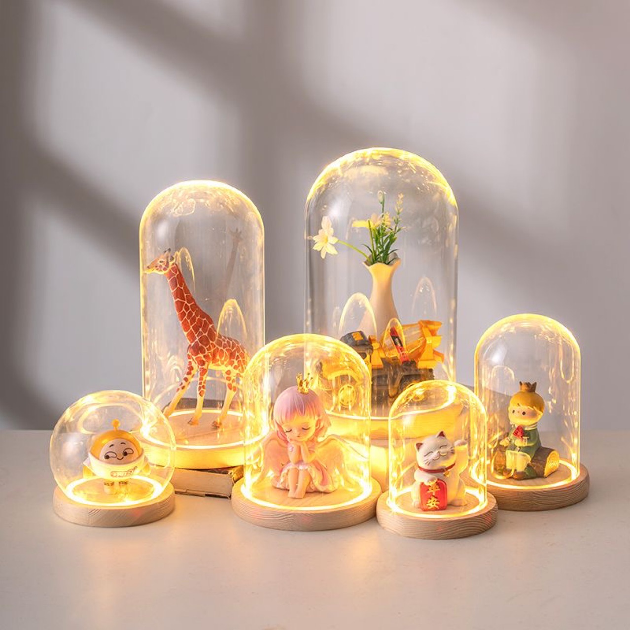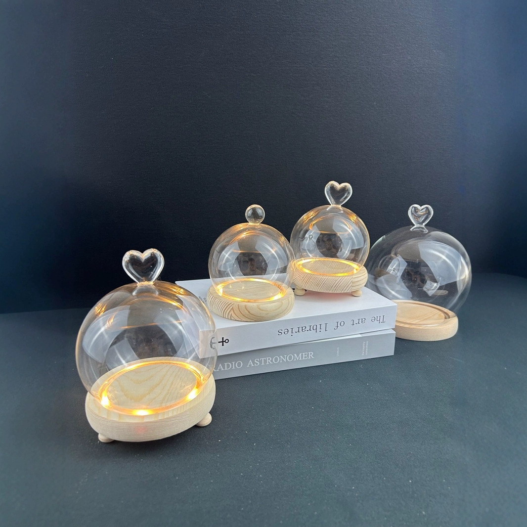 球形発光ベース手作りランプ付きガラスカバー永生花積み木手作りブラインドボックス粘土ケーキ焙煎子
