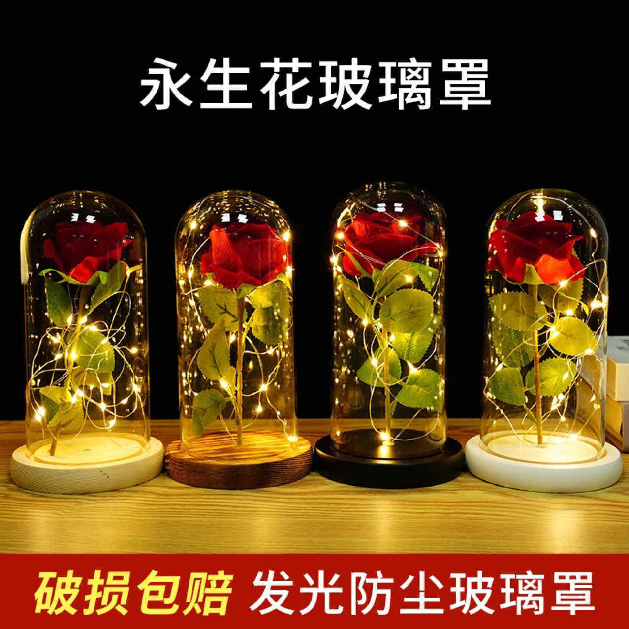 ローズ花ガラスカバー永生花ガラスカバー母の日ギフト女の子诞生日プレゼント祝日バレンタインギフト