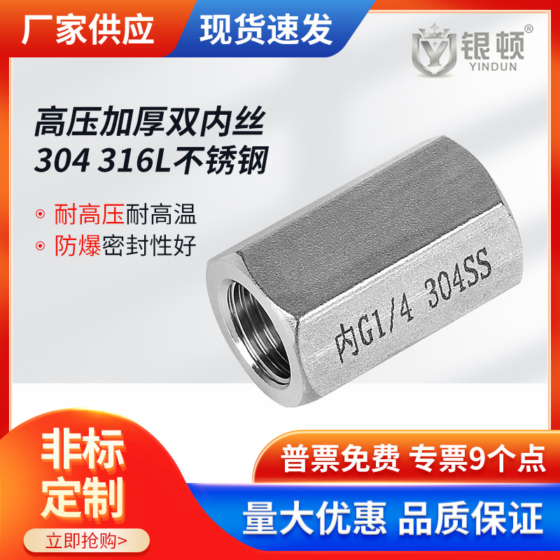 规格 【304】内1/8(1分),【304】内1/4(2分),【304】内1/4(2分)面板穿板,【304】内3/8(3分),【304】内1/2(4分),【304】内3/4(6分),【304】双外螺纹1/8(1分),【304】双外螺纹1/4(2分),【304】双外螺纹3/8(3分),【304】双外螺纹1/2(4分),【316材质】内1/8(1分),【316材质】内1/4(2分),【316材质】内3/8(3分),【316材质】内1/2(4分)