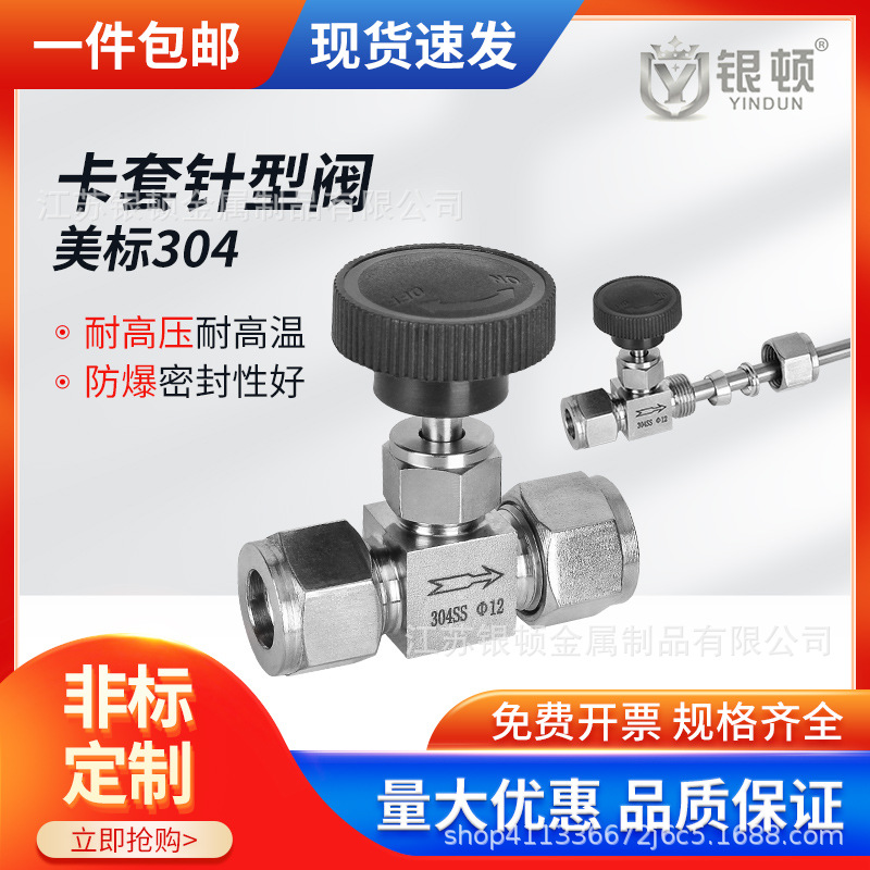 银顿304仿美不锈钢卡套针阀截止阀面板式流量调节控制阀微调节阀