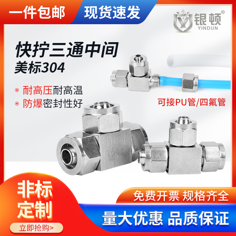 シルバートン304ステンレスクイックねじり三方ロックエンドpuチューブナイロンチューブptfeチューブチューブクイックT型