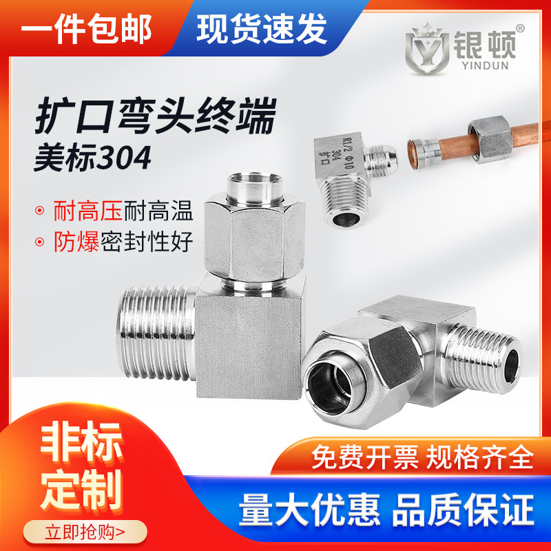 銀トン304ステンレス拡口式外糸直通エルボ端末1分2分3分4分-6/8/10/12管