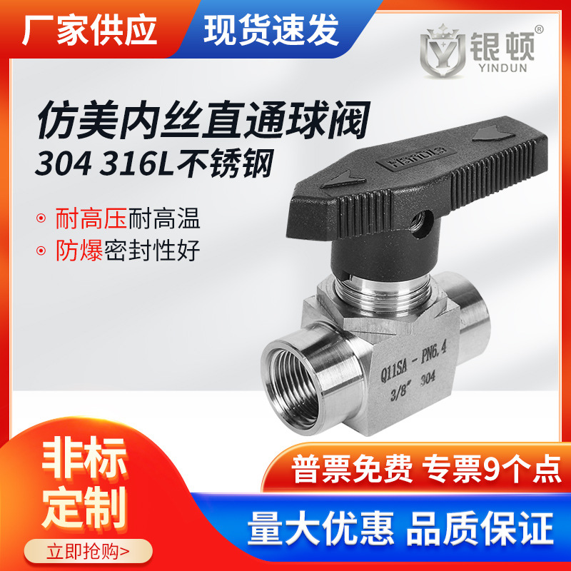 銀トン304316Lステンレスカードカバーボール弁Q91SA擬美直通パネル式ボール弁計器スイッチガス源