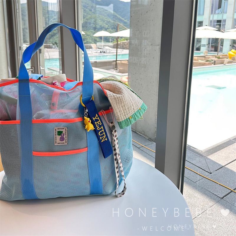 韩国ins沙滩包大容量健身泳衣收纳袋户外便携单肩折叠手提网袋