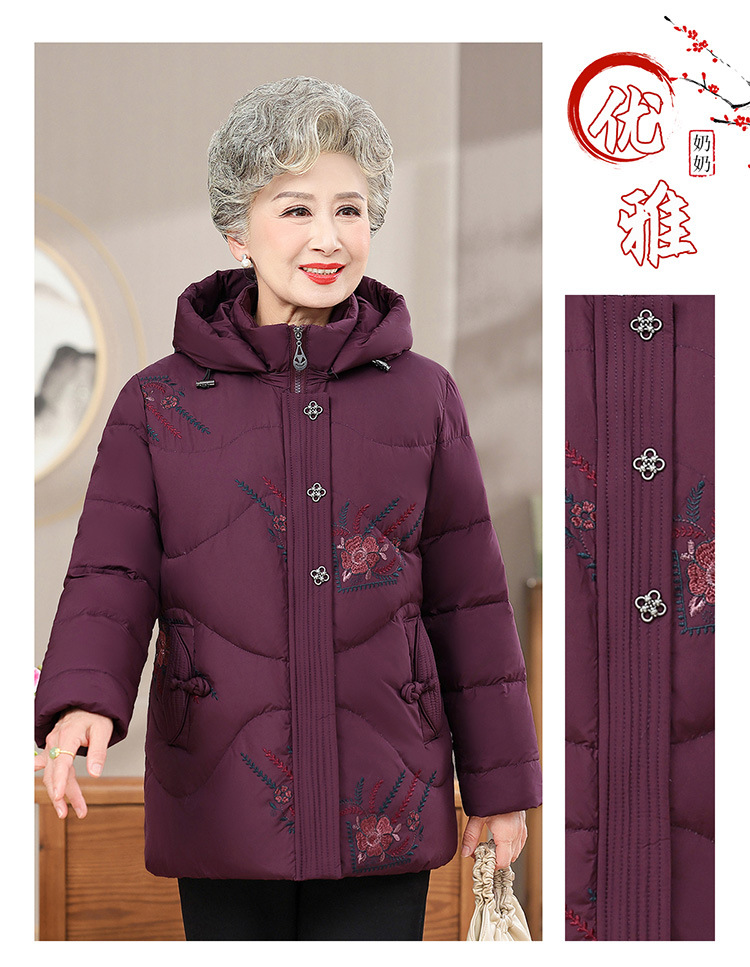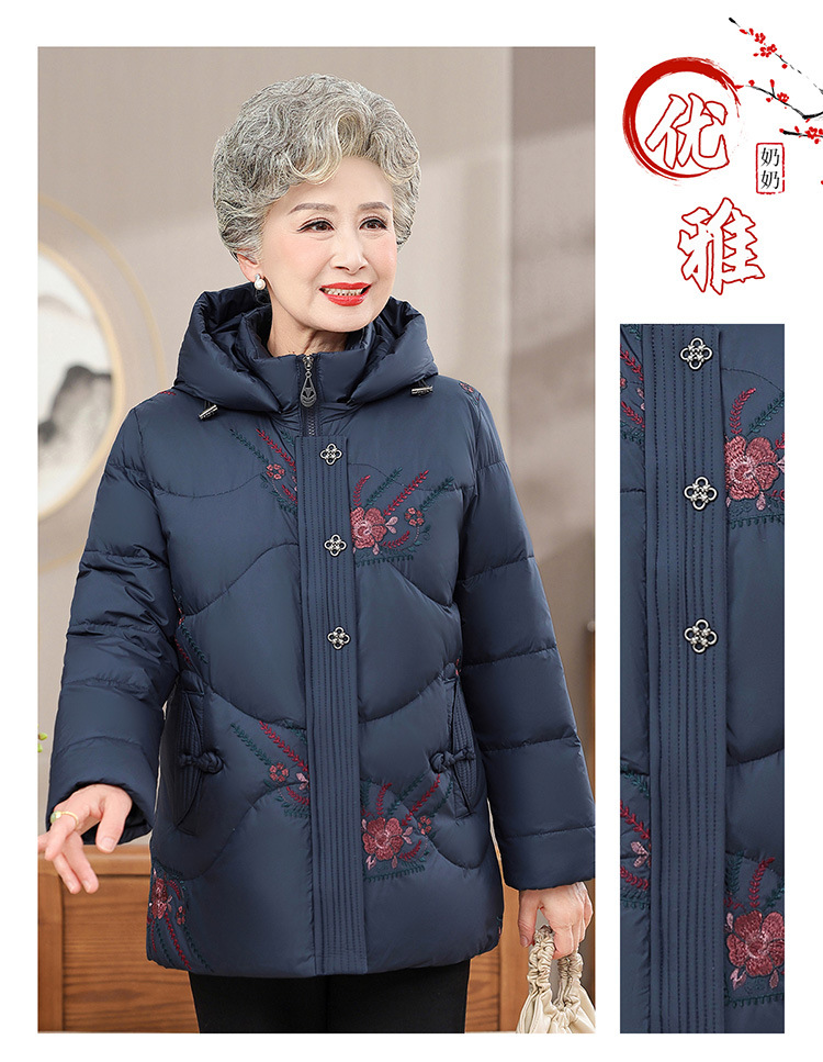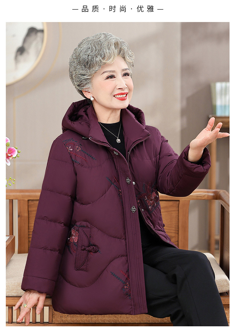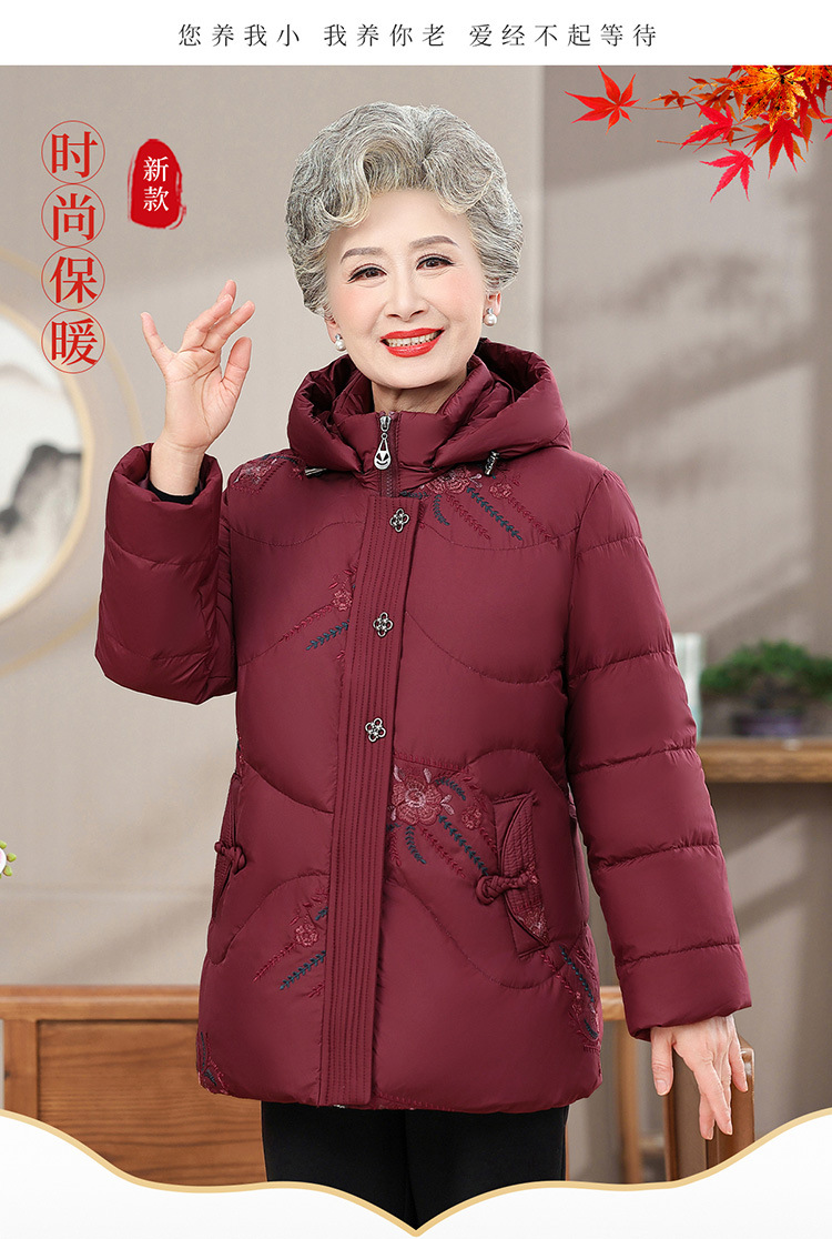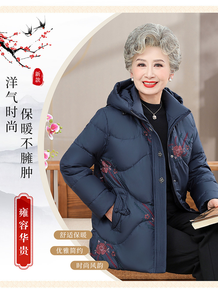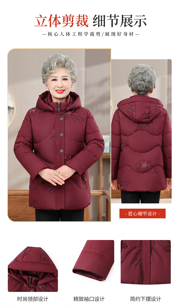 中老年人女装羽绒服奶奶装连帽保暖外套时尚妈妈冬季防寒加厚衣服