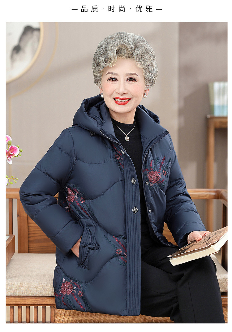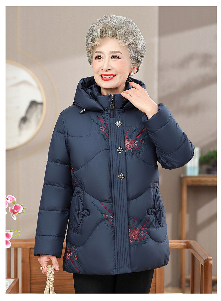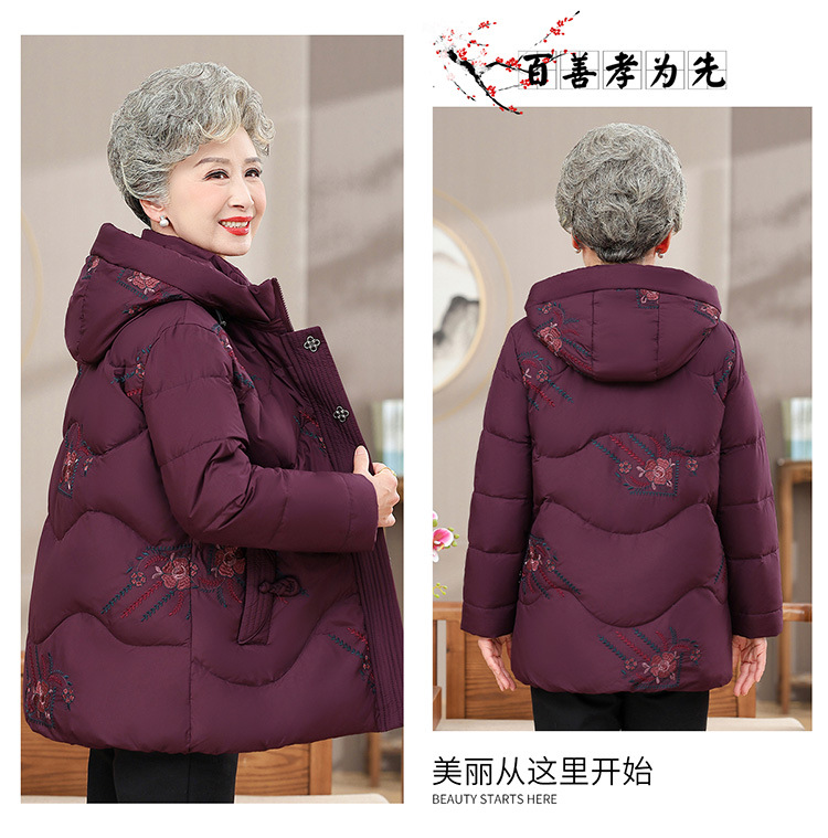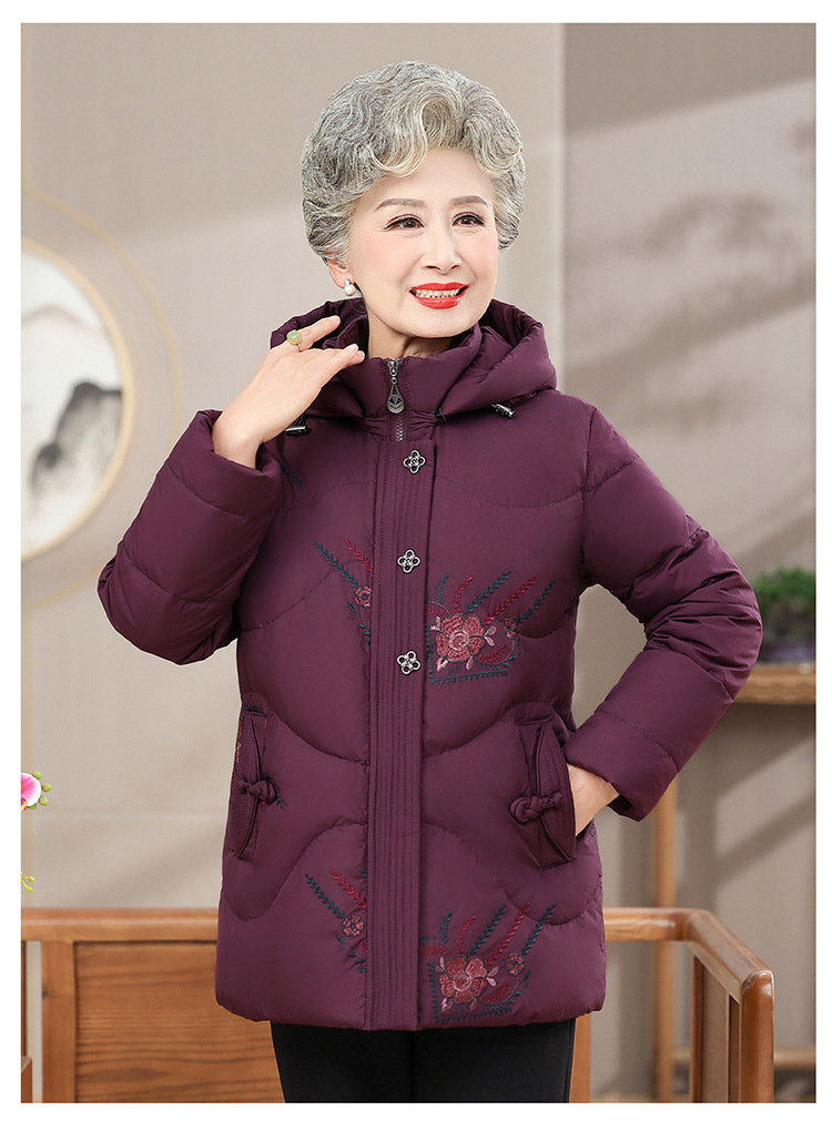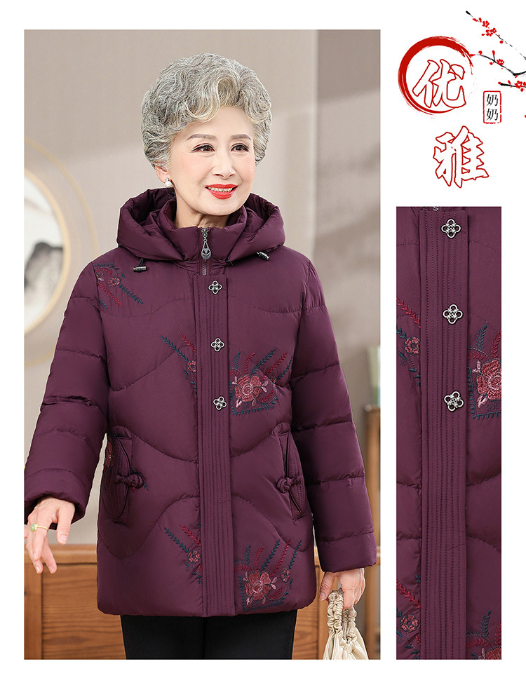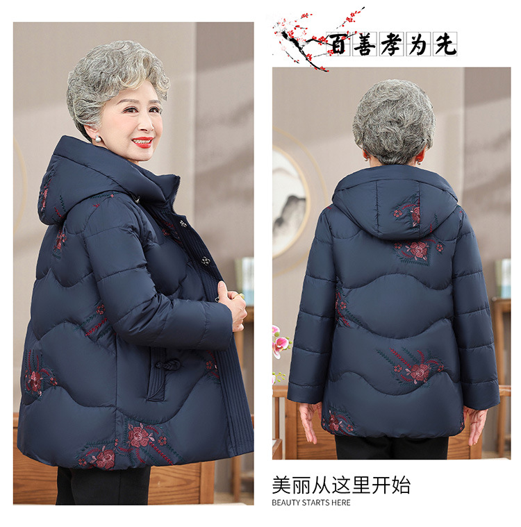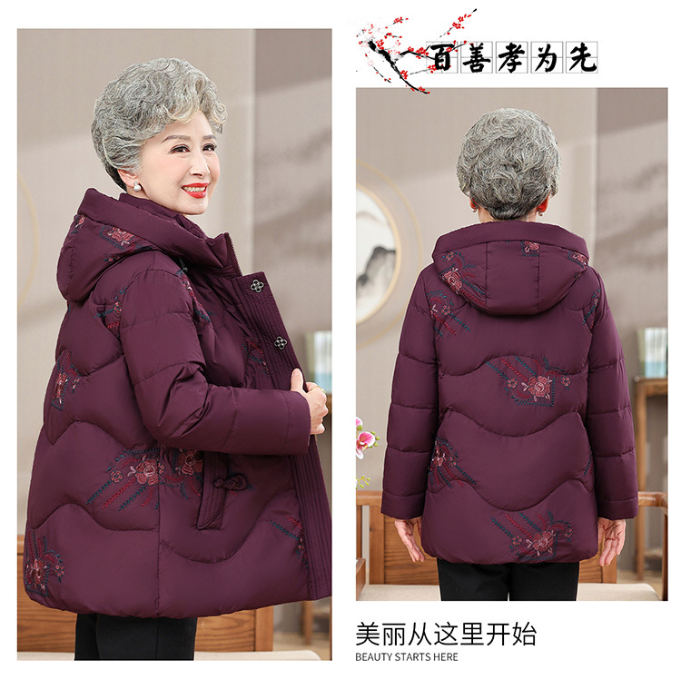 中老年人女装羽绒服奶奶装连帽保暖外套时尚妈妈冬季防寒加厚衣服