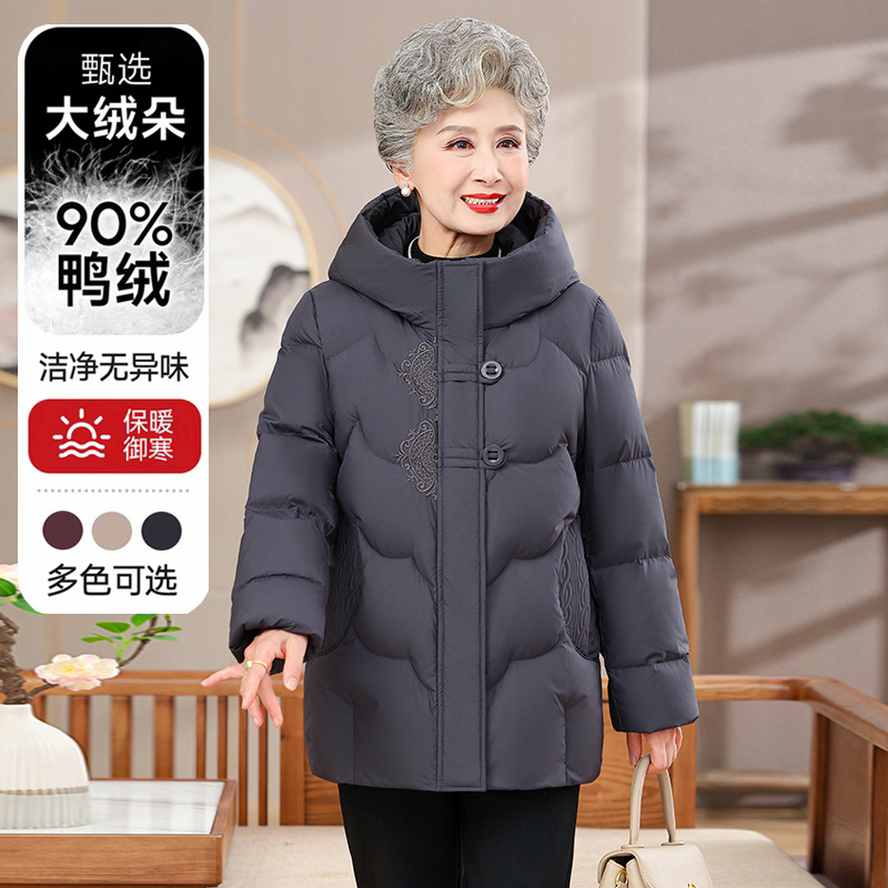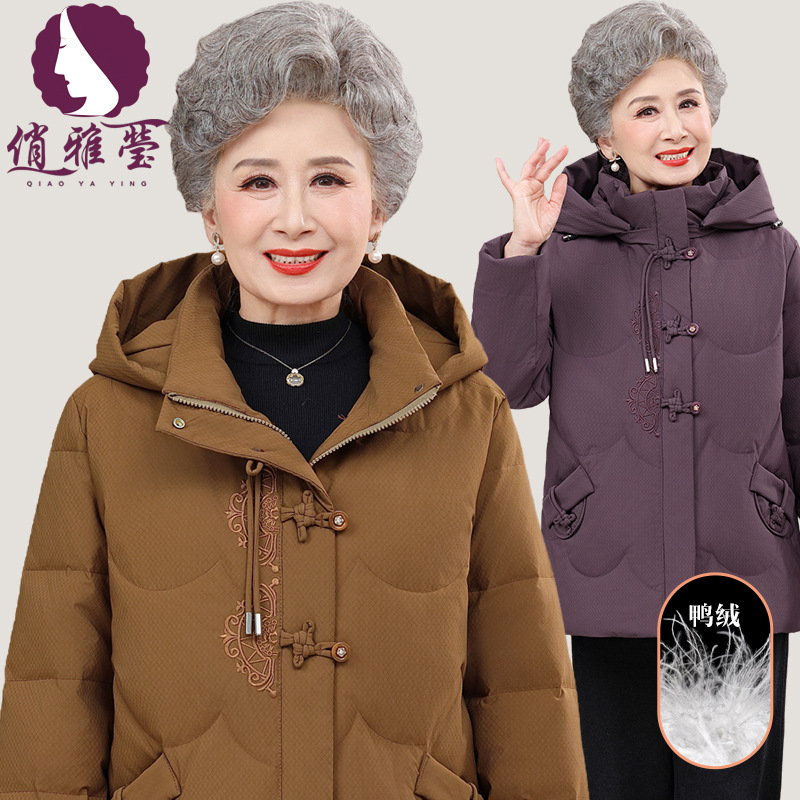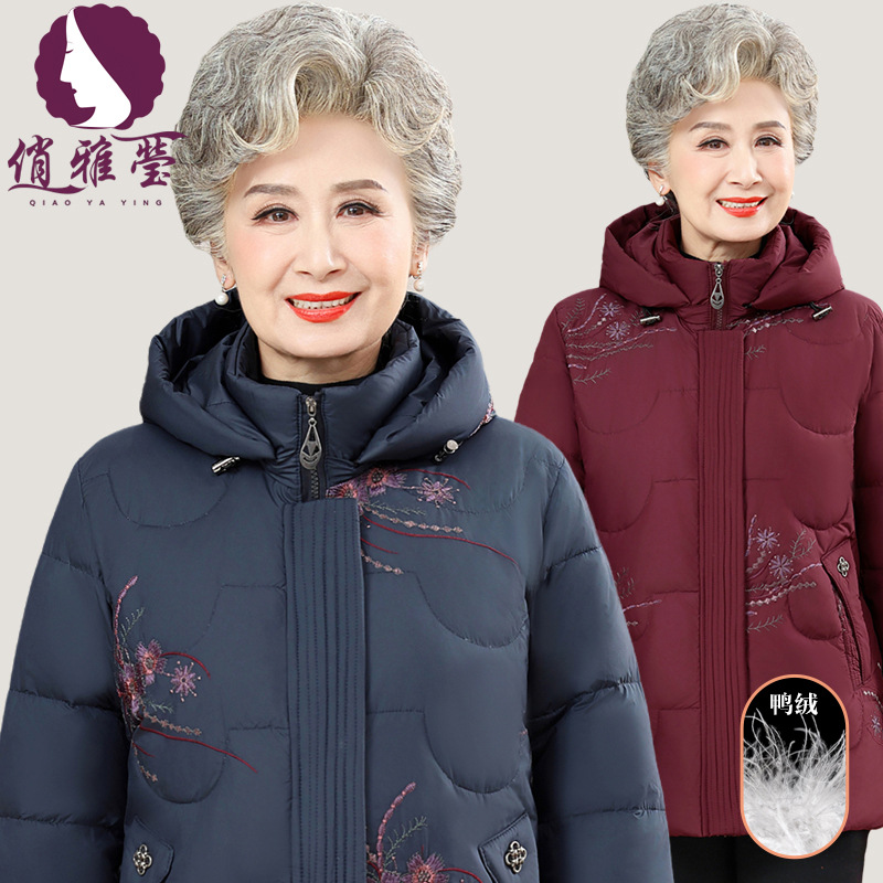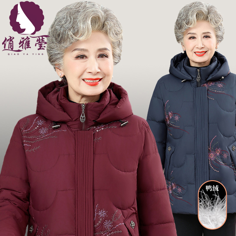 商超批发妈妈冬装羽绒服老太太加厚连帽鸭绒防寒服奶奶外套上衣女