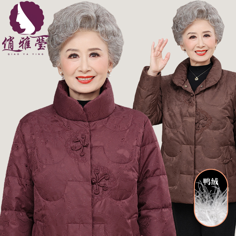 高档奶奶冬装羽绒服老人加厚60岁70中老年女装妈妈冬季短款外套女