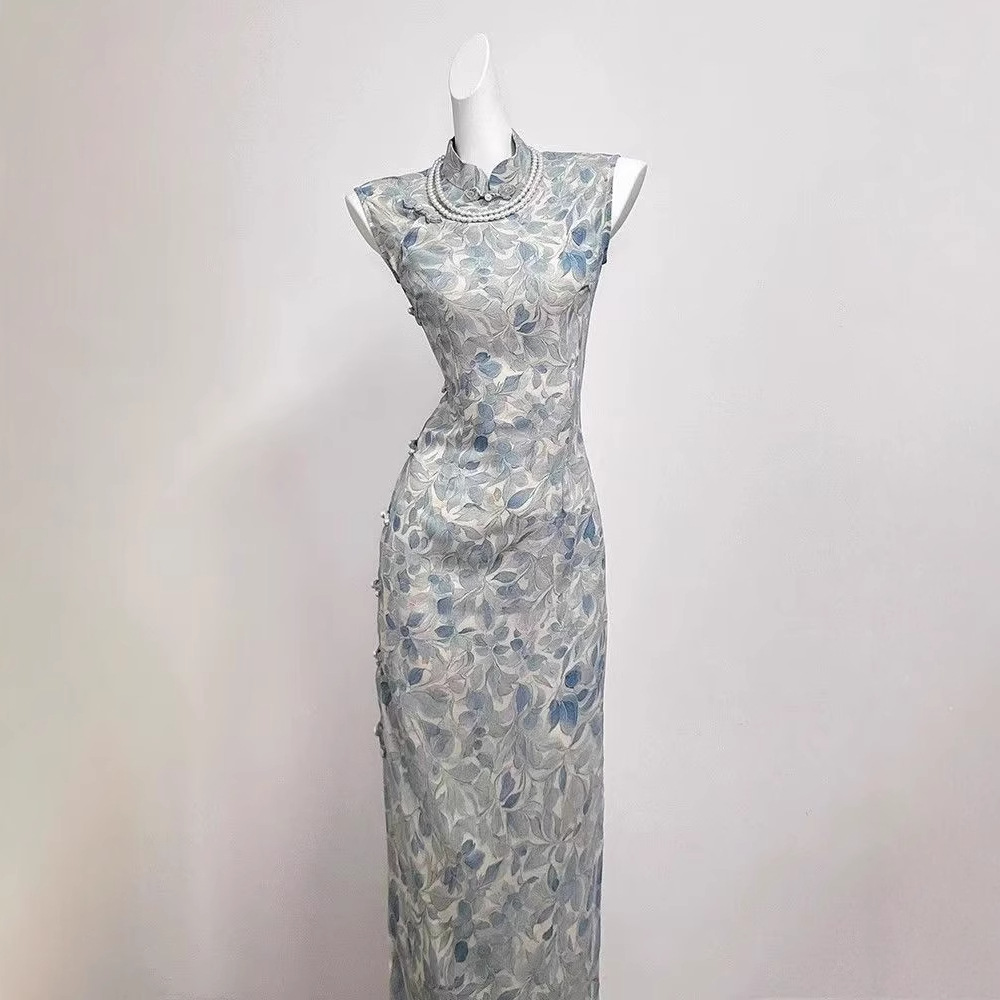 2025 新しいハイエンドスリム夏ノースリーブ古代プリントチャイナドレス新しい中国風のドレスデイリー女性