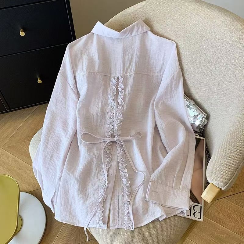 自分用におすすめ〜女性用バックレースアップスリットプリーツ耳シャツ夏新作デザイン日焼け止めトップス