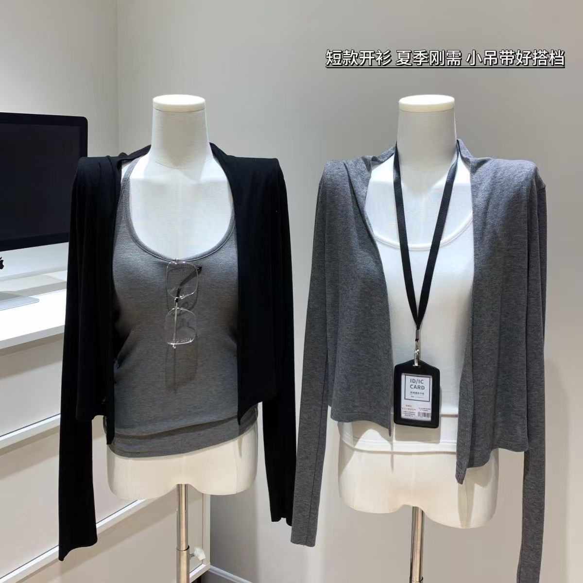 モーダルグレーとブラックの日焼け止めカーディガン 2025 夏怠惰なスタイルの空調サスペンダートップ新しいオフショルダー薄いコート女性用