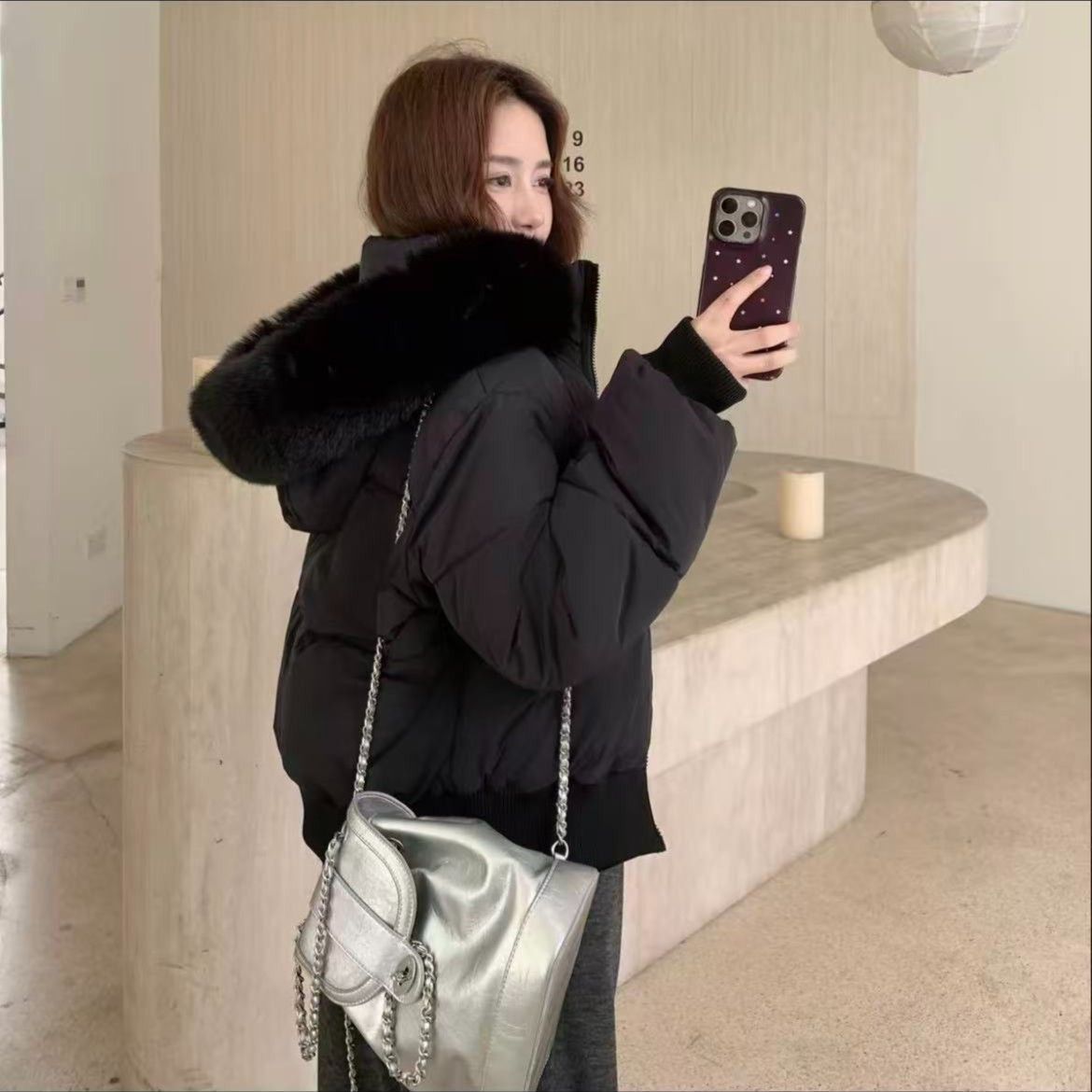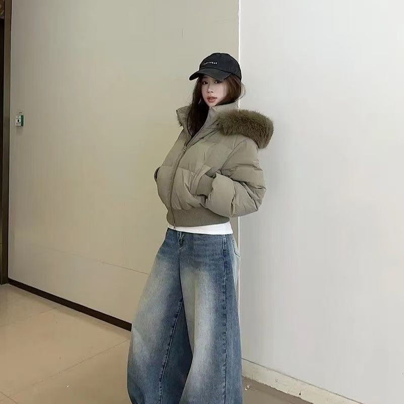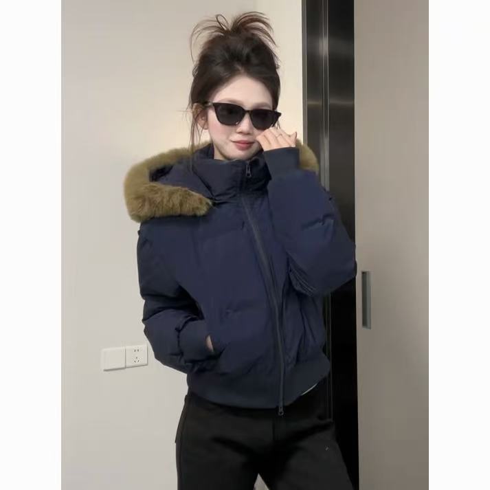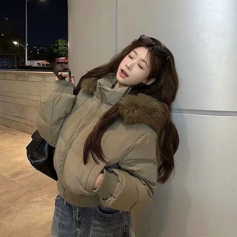 棉服高级感毛毛领连帽棉衣2025冬季设计感拉链棉袄棉服外套长裤女