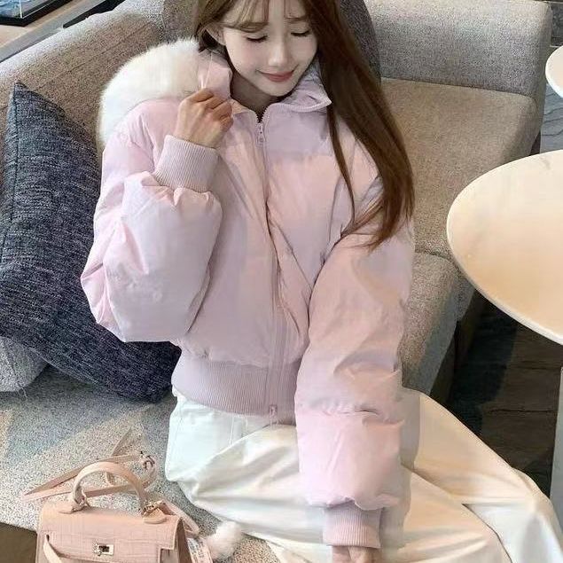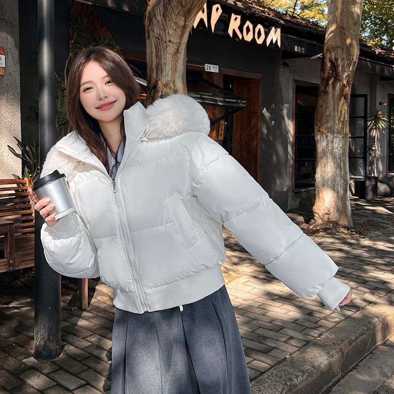 千金风加厚棉服女韩系收腰显瘦大毛领连帽可拆卸保暖短款棉服外套