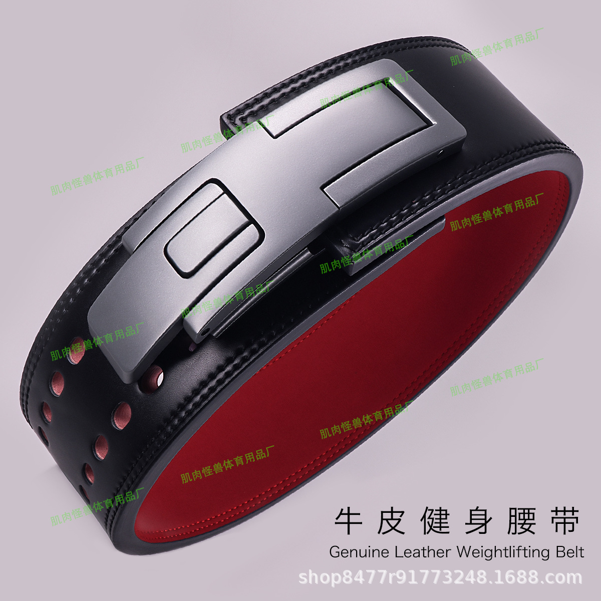 牛革フィットネスベルトデッドリフトスクワットクイックバックルパワーリフティングスポーツウエストサポート複列レバーバックルプロフェッショナルボディービル保護具