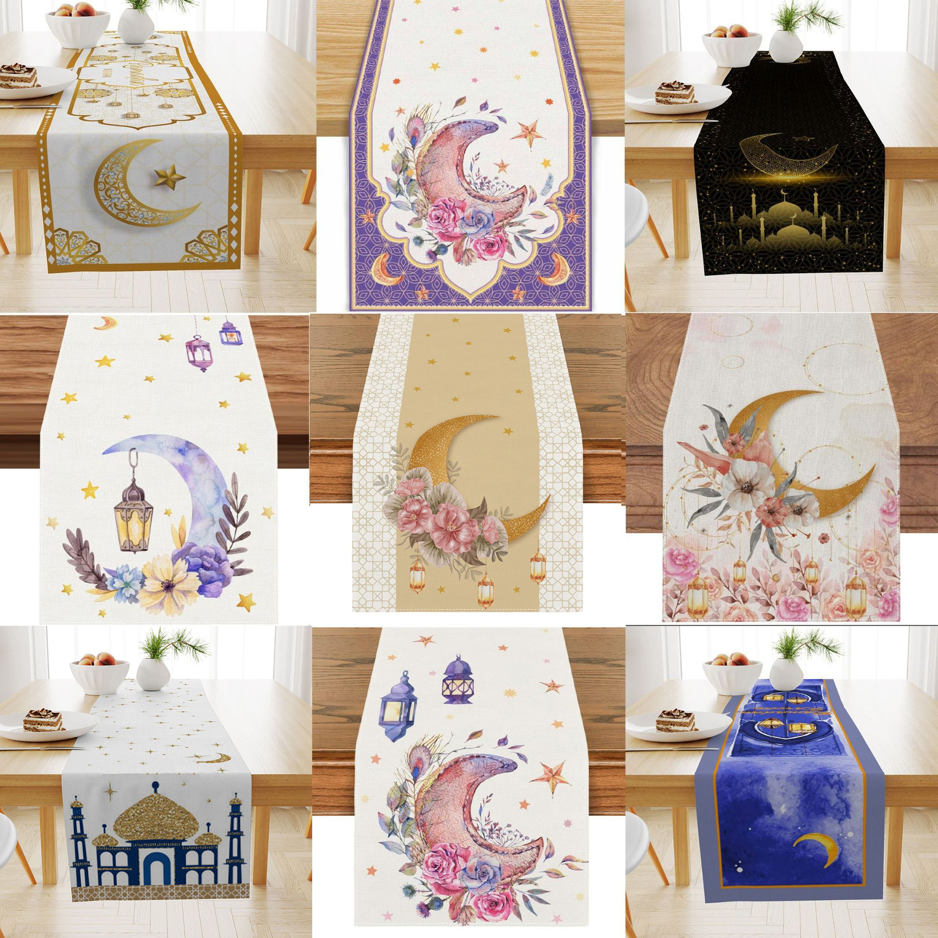 东南亚新款热销月亮印花桌旗穆斯林节日布置长条桌旗餐厅装饰桌布