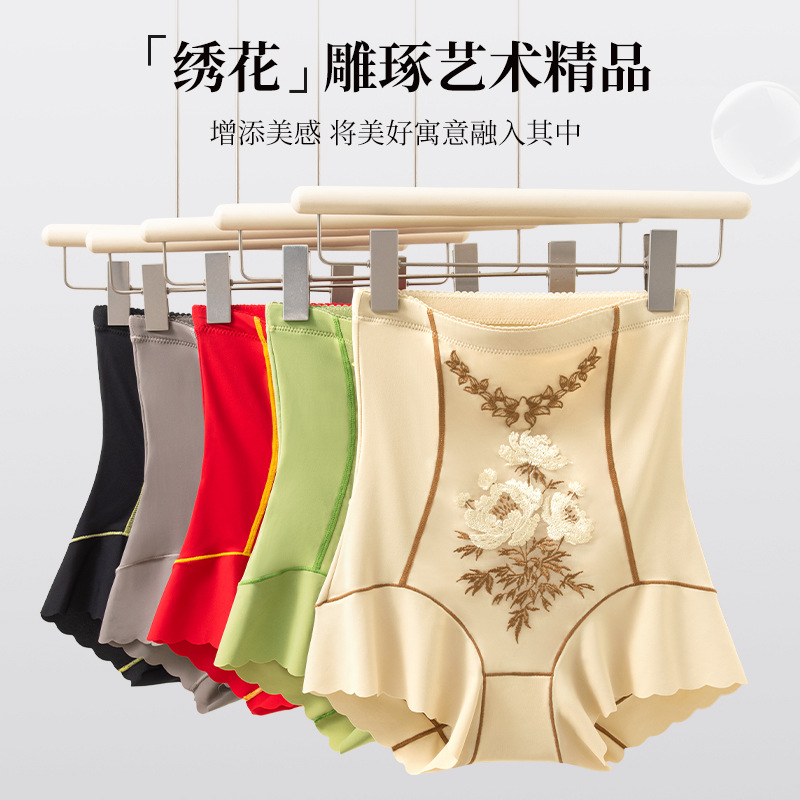 直播新款大码无痕高腰提臀收腹裤刺绣花雕透气塑形身美体安全内裤