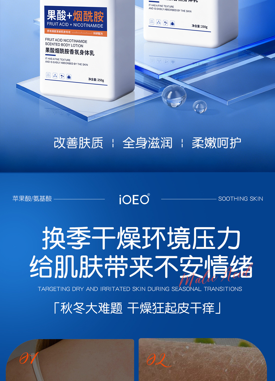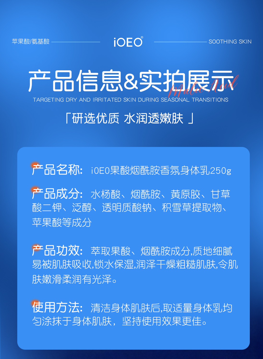 iOEO果酸烟酰胺身体乳保湿去干皮滋润保湿烟酰胺补水持久留香代发