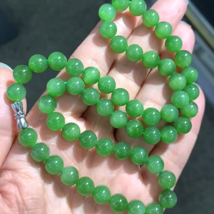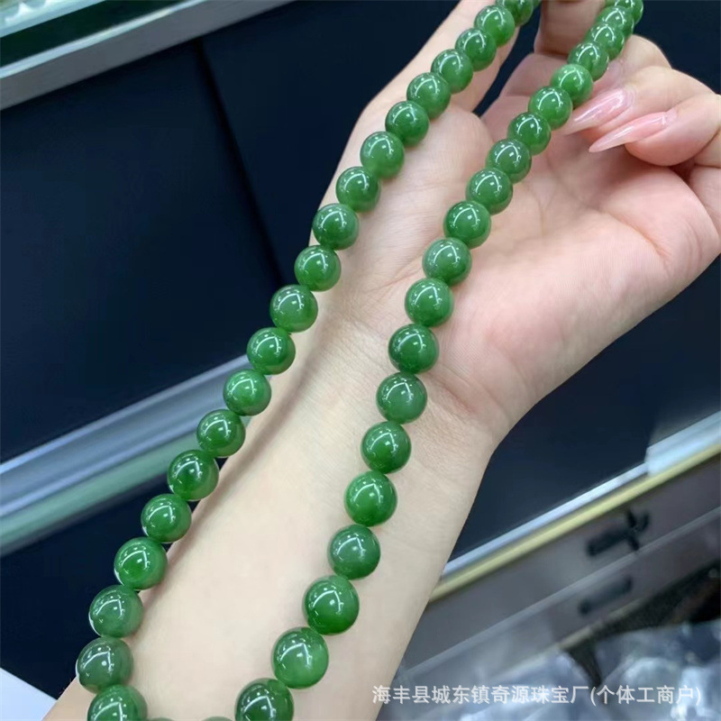 原鉱ロシア材料和田玉碧玉12m手串陽緑帯微黒点diyボール部品メーカー卸売り