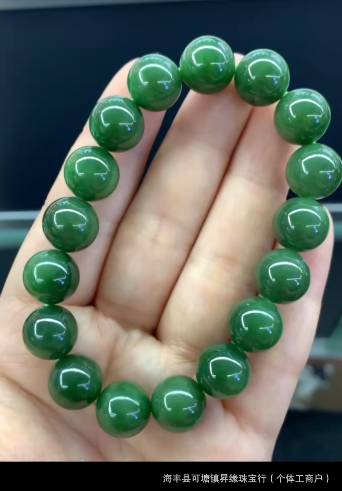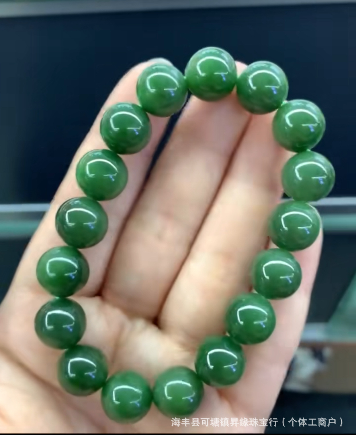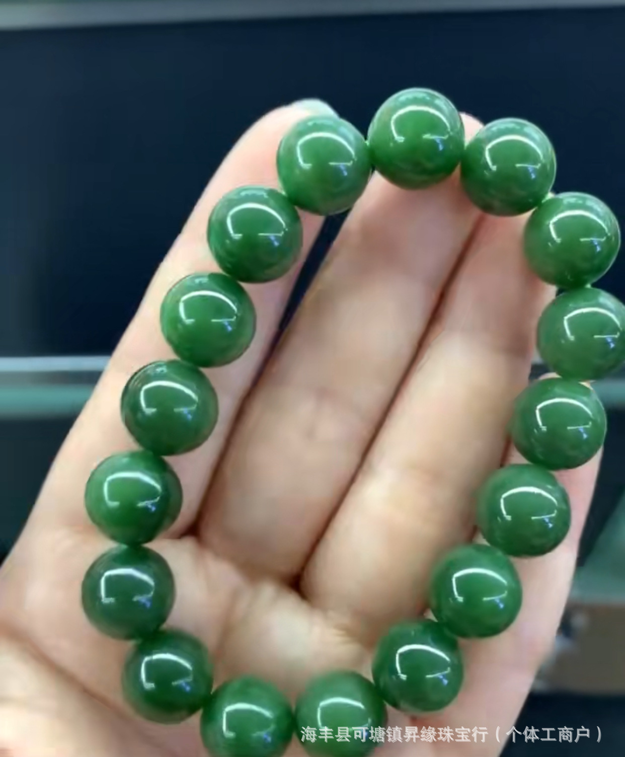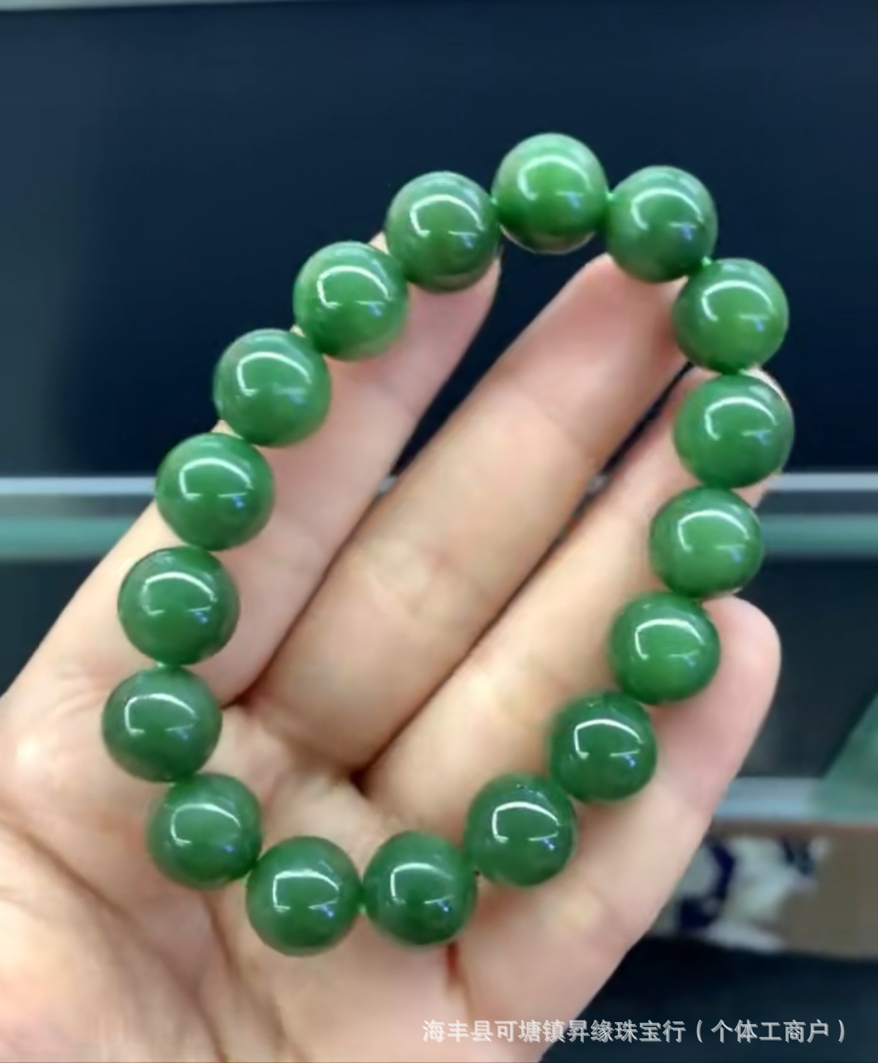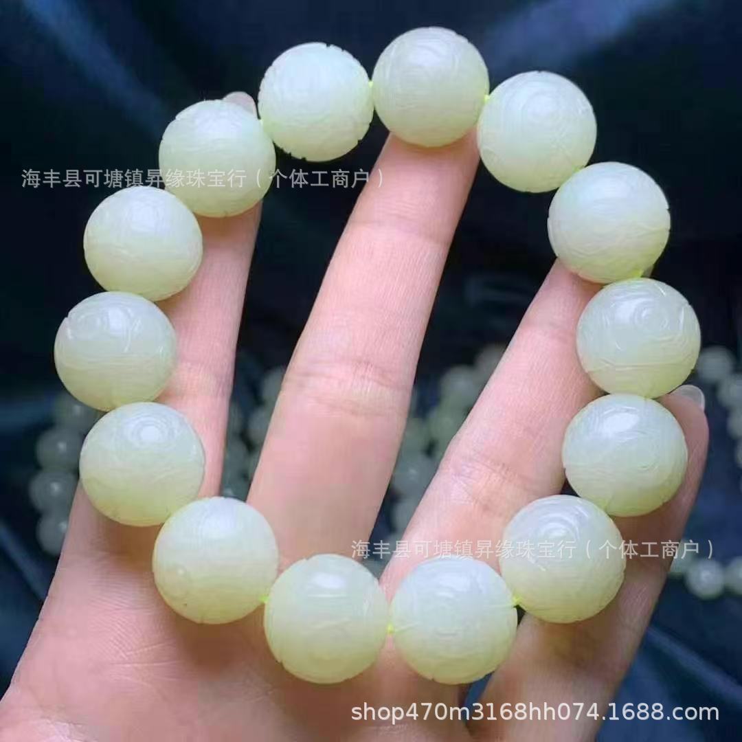 厂家批发 天然俄料和田碧玉12mm手链无黑点料细温润 单圈圆珠手串