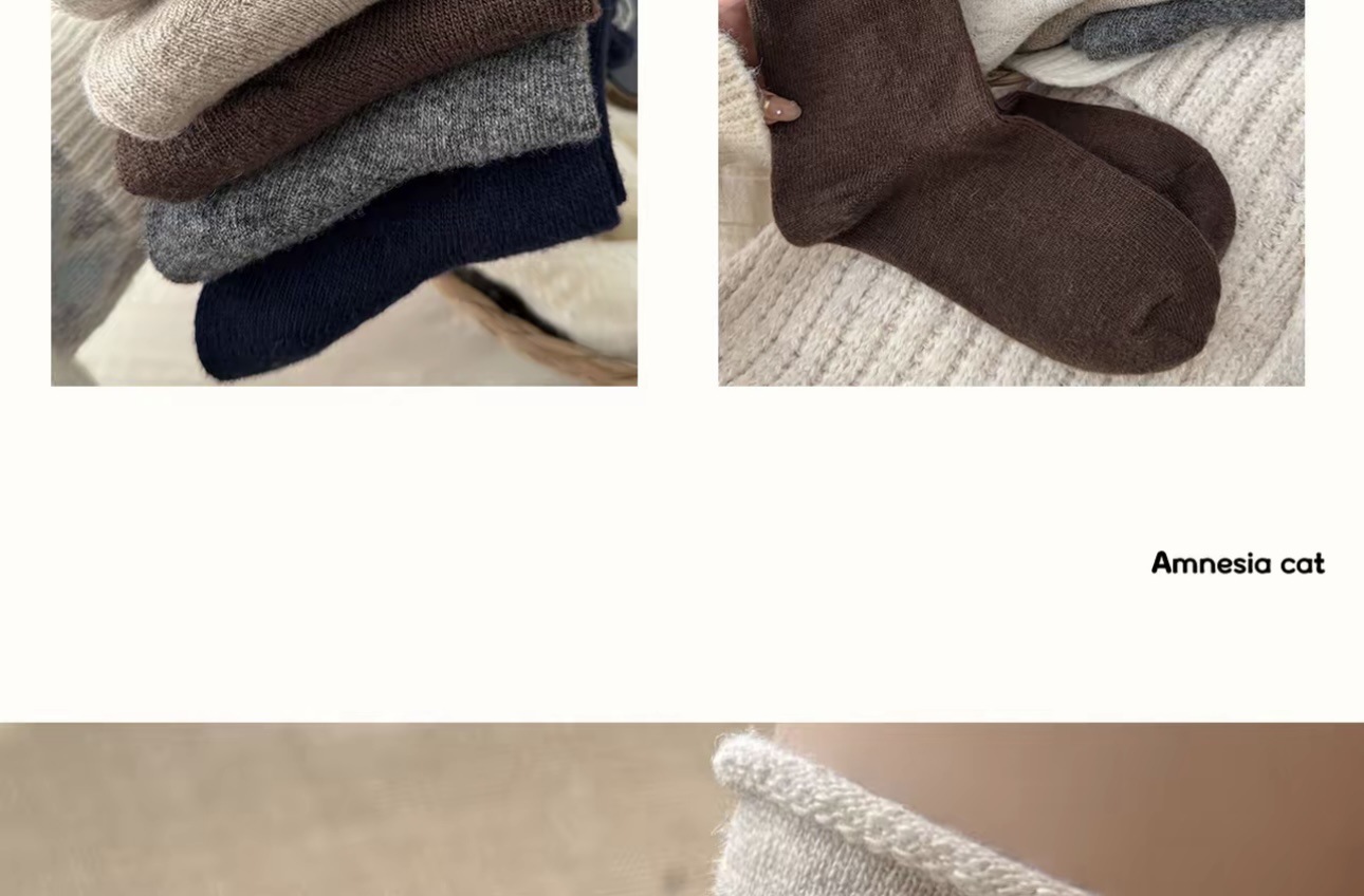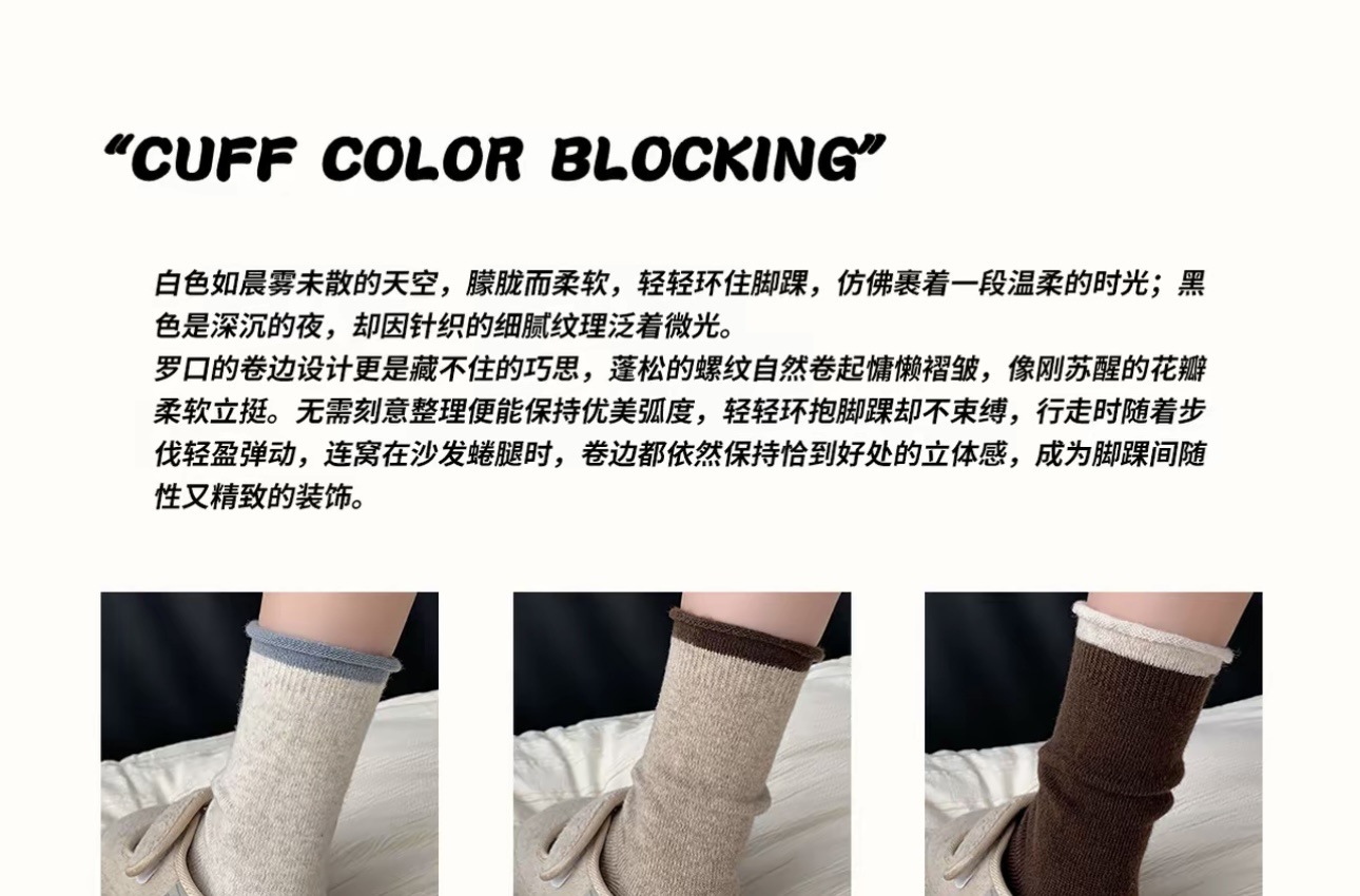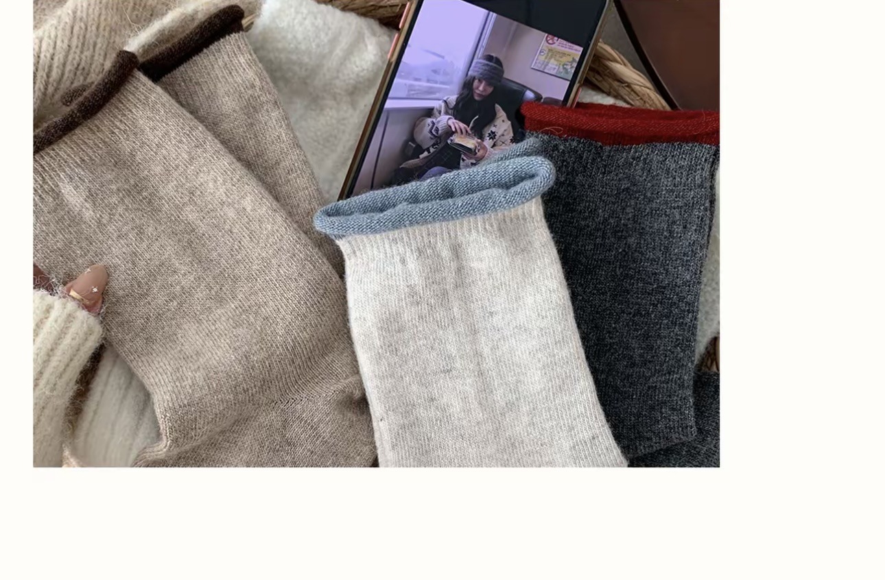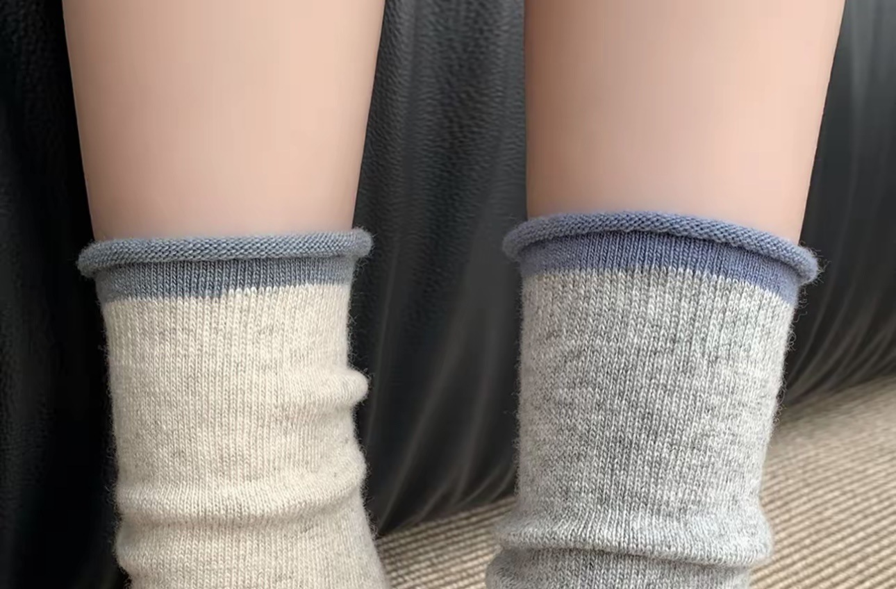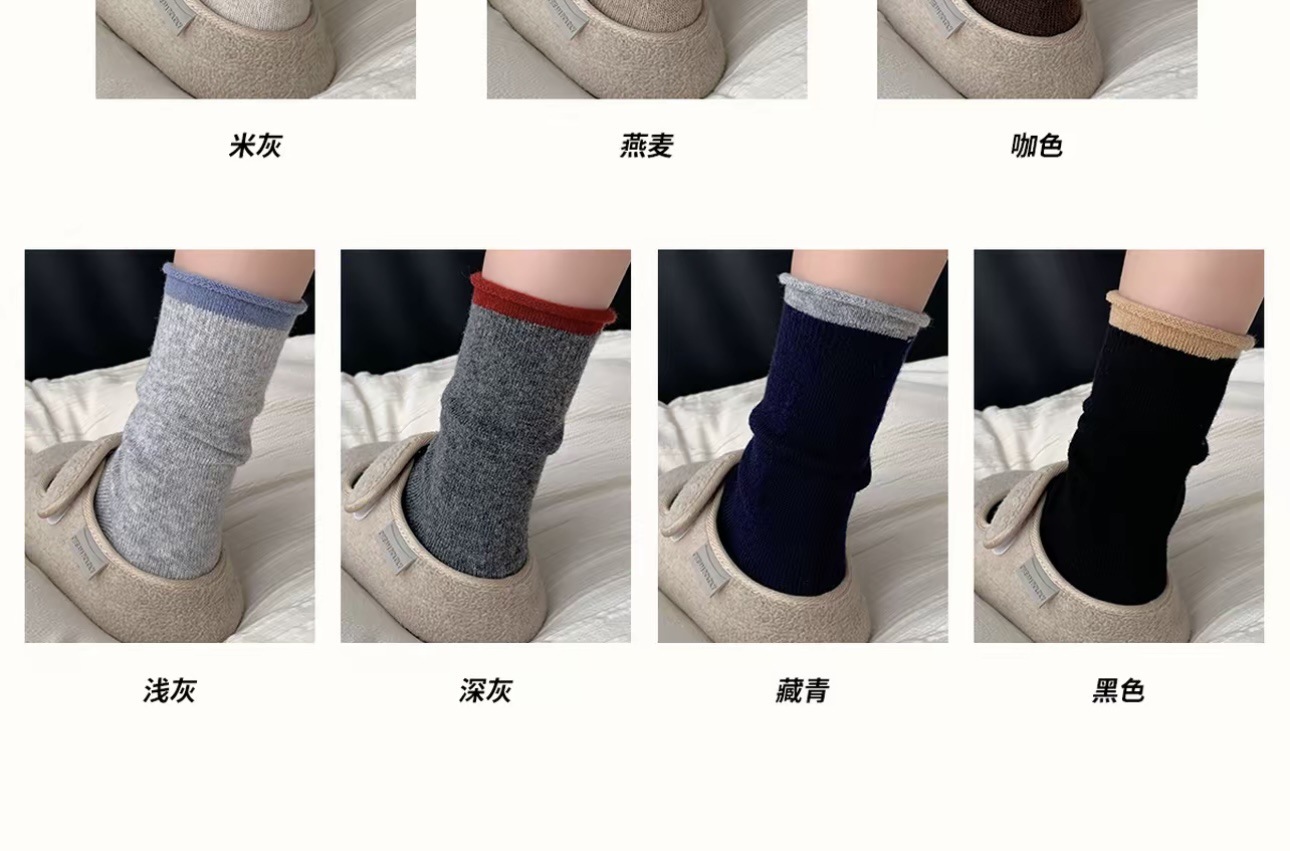 慵懒风秋冬袜子女中筒韩系卷边撞色堆堆袜软糯保暖羊毛袜诸暨袜业