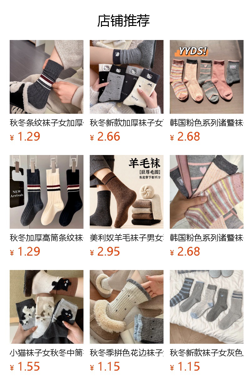 秋冬款条纹袜子女中筒袜保暖加厚韩版ins潮百搭堆堆袜诸暨袜业