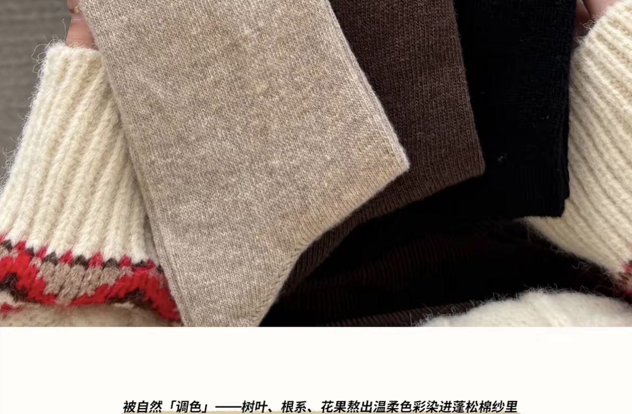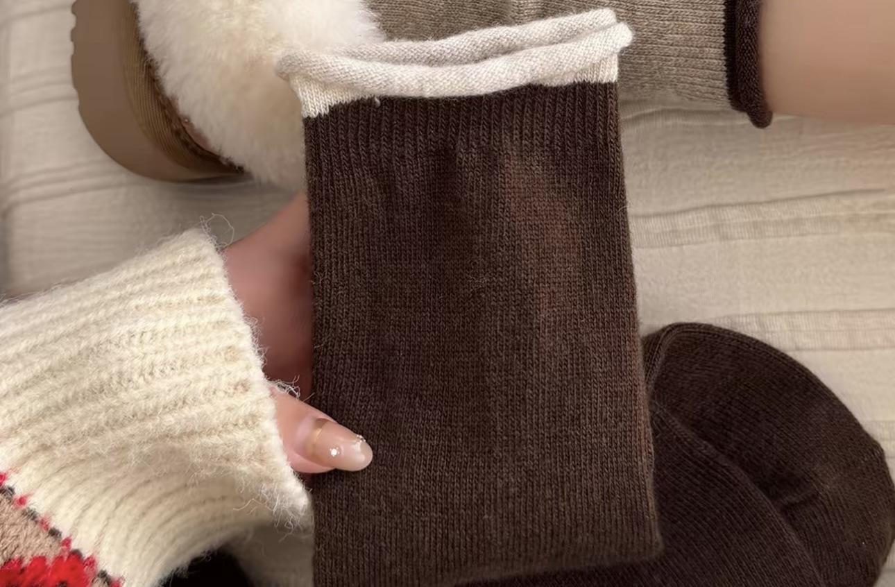 秋冬季卷边袜子女复古美拉德中筒袜加厚保暖羊毛袜堆堆袜诸暨袜业