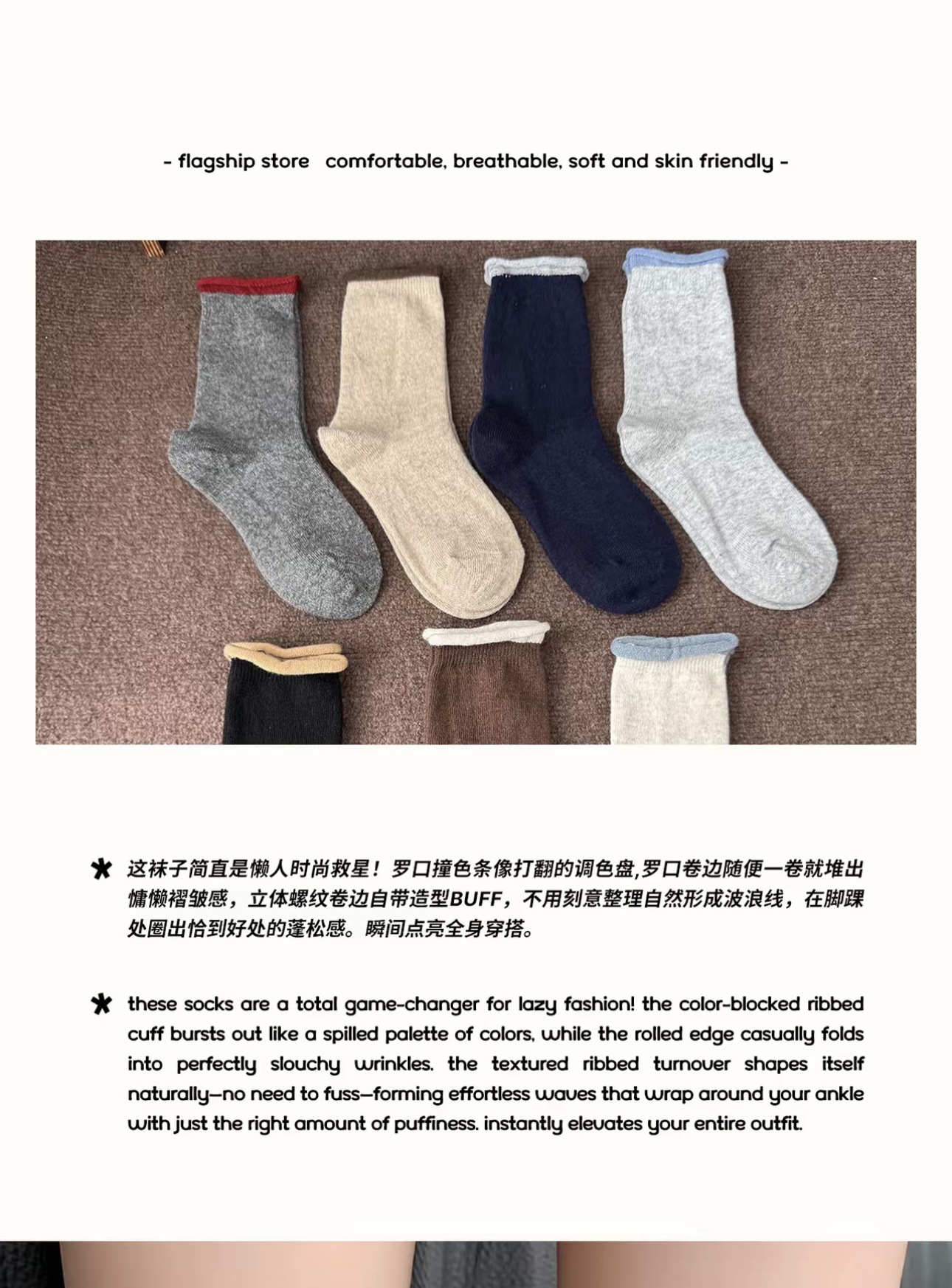 货号 【卷边袜子女复古】5色