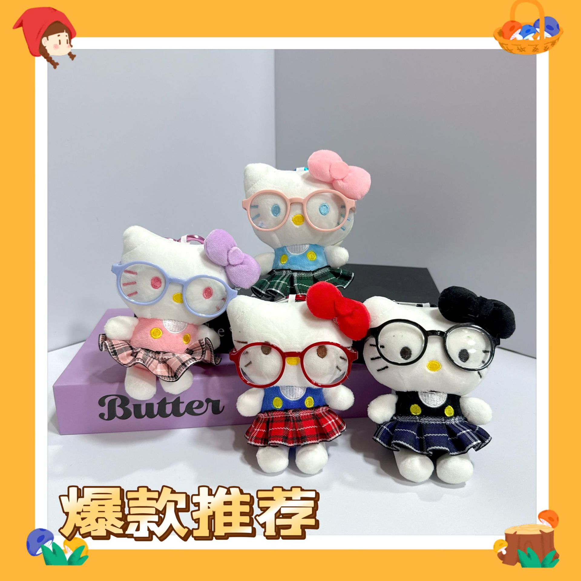 可爱萌眼镜kt猫挂件毛绒玩具公仔小猫咪包包挂饰钥匙扣布娃娃玩偶