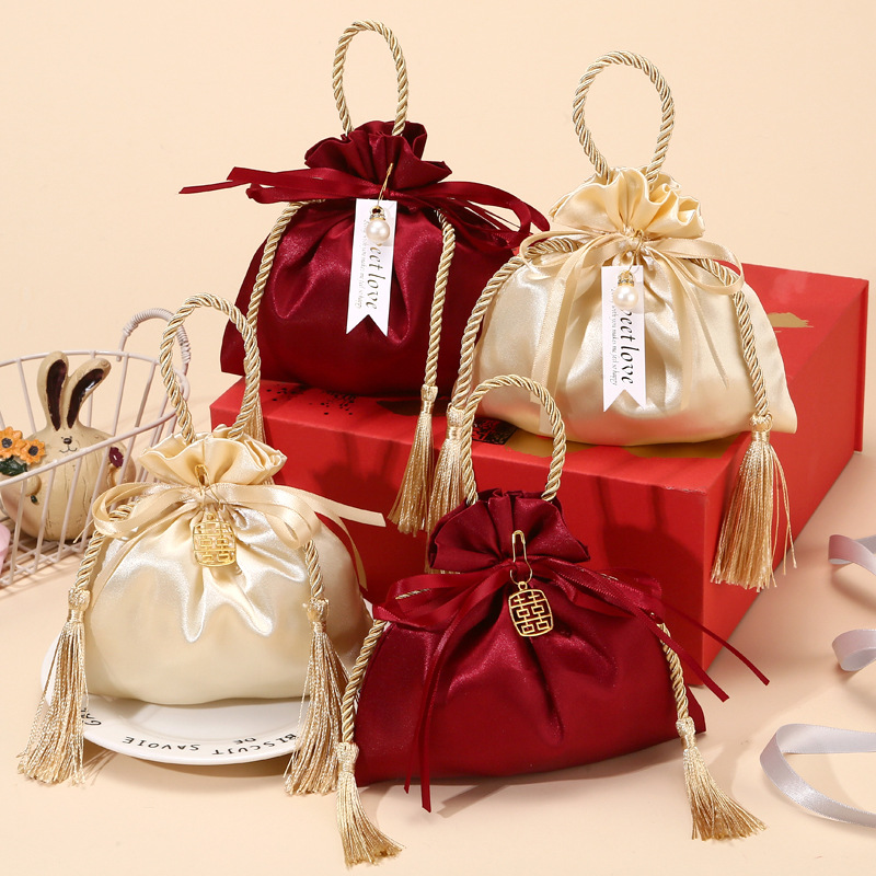 結婚式のお土産袋、シルク製キャンディバッグ、手持ち式キャンディボックス、結婚式のお返し、卸売ギフトボックス