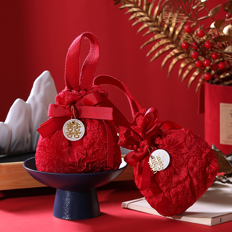 結婚式のキャンディーバッグ、記念品、赤いハンドバッグ、ウェディングギフトバッグ、高級折り目なし厚手包装袋、ウェディングバッグ