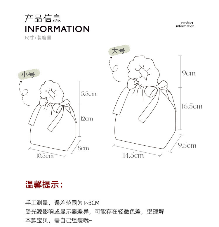 ウェディングリボン付きキャンディボックス、布製バッグ、フラワープリーツ、折り目なしキャンディバッグ、ウェディングキャンディバッグ、ギフトバッグ