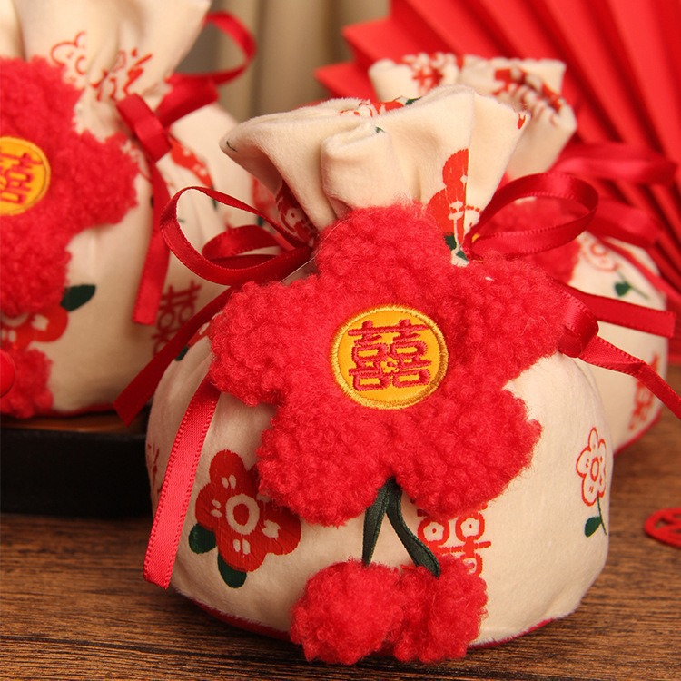 2024年新作クリエイティブウェディングキャンディバッグ、ベビー満月・一歳記念ベルベットキャンディバッグ、結婚式の記念品キャンディボックス