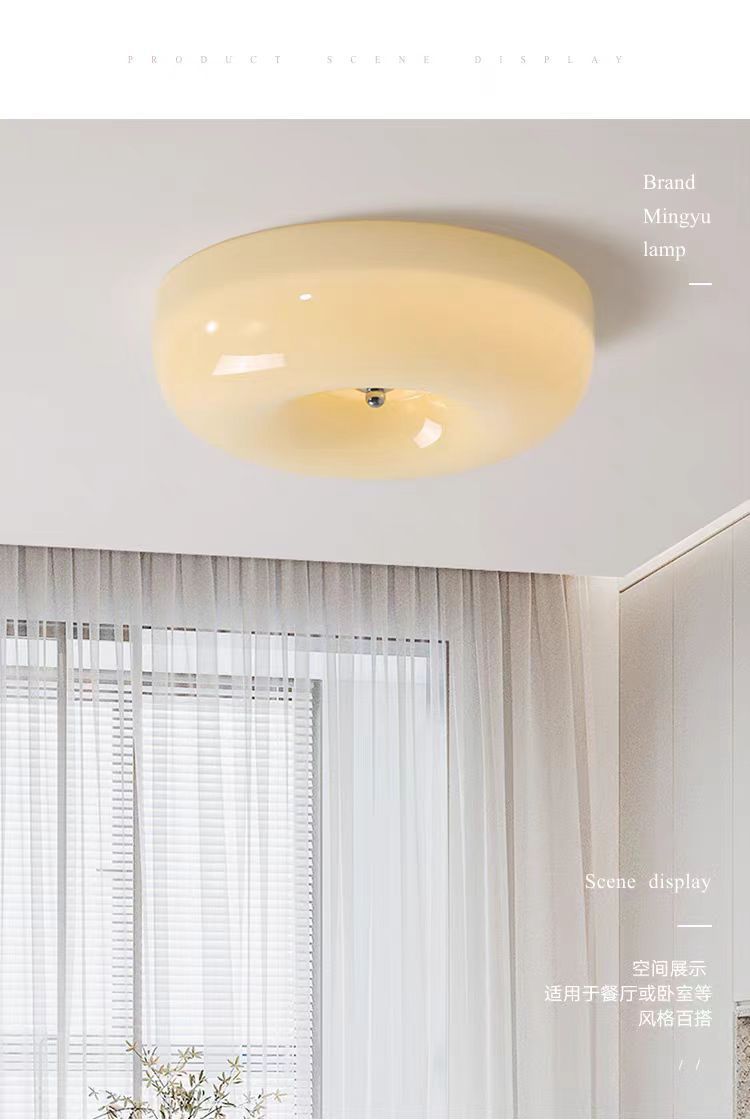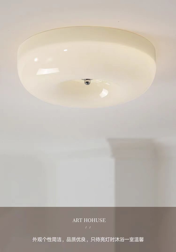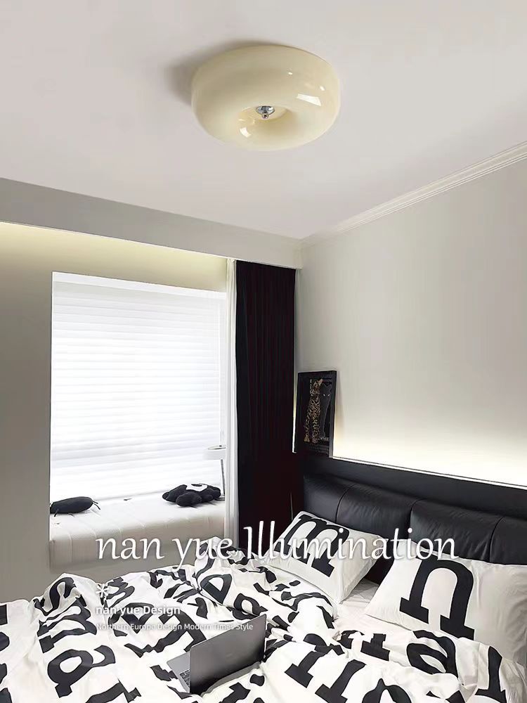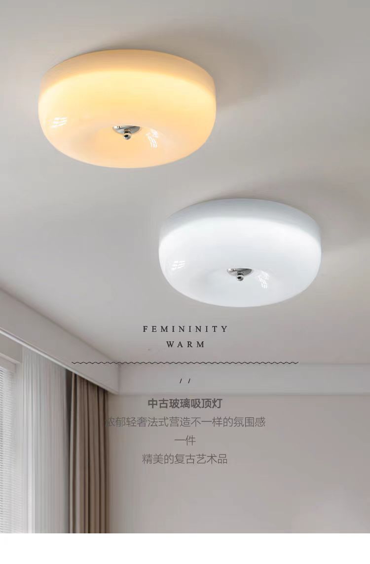 奶油风全光谱护眼光源卧室中古吸顶灯包斯豪布丁过道阳台玻璃灯具