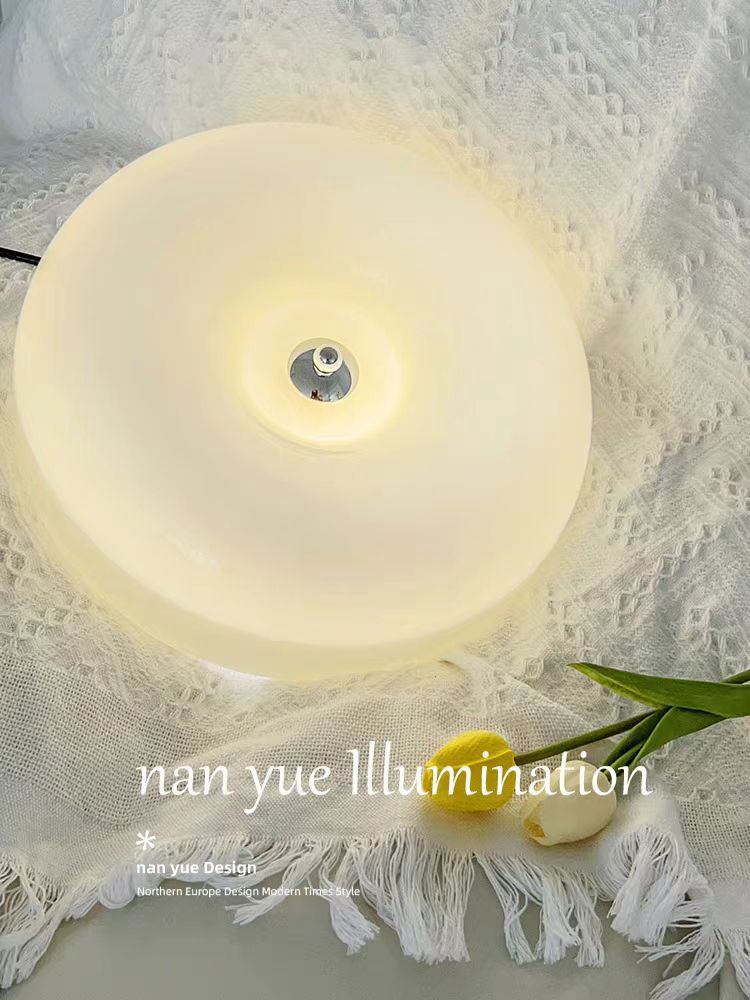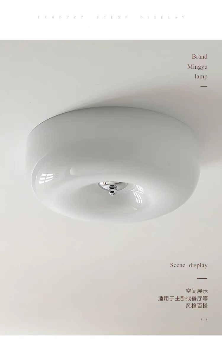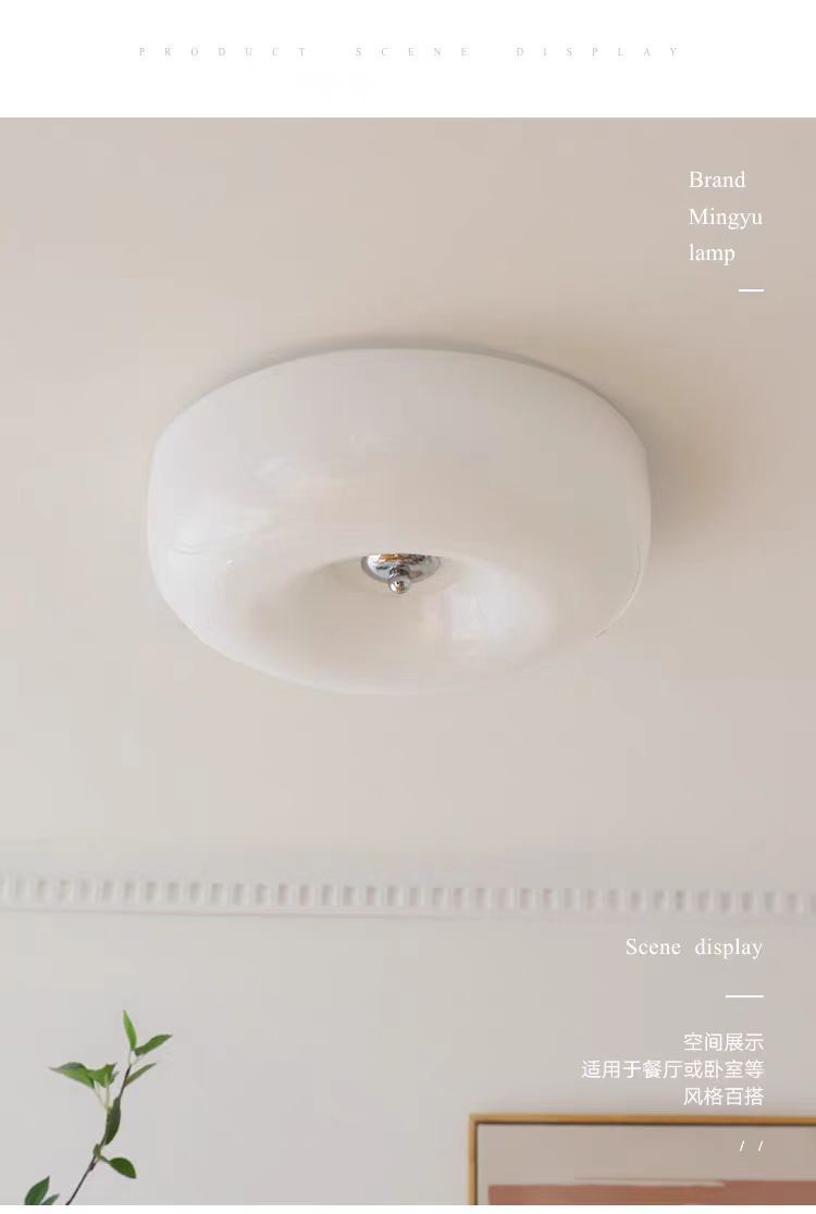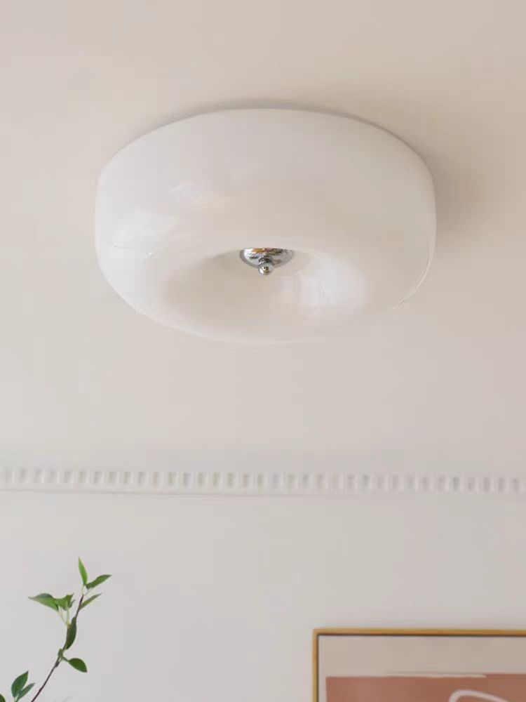 奶油风全光谱护眼光源卧室中古吸顶灯包斯豪布丁过道阳台玻璃灯具