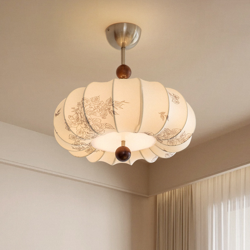 法式复古风卧室吊灯布艺花纹中古餐厅南洋实木侘寂风温馨房间主灯
