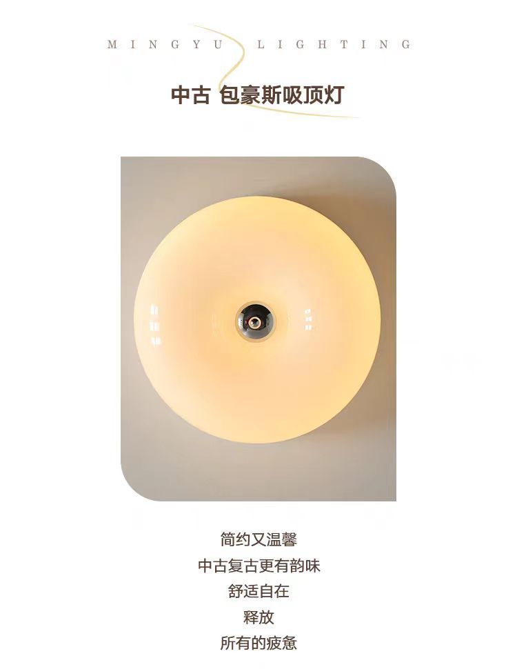 中古卧室吸顶灯包豪斯复古主卧次卧灯奶油风玻璃蛋挞书房吸顶灯