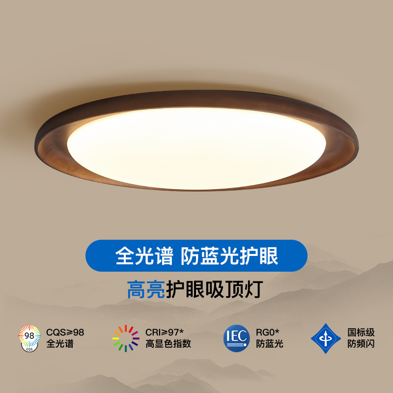 中古風の目を保護して天井の明かりの胡桃の木の色の客間の明かりの2025新型のシンプルな現代の暖かい目のホールの明かりを吸い込みます。
