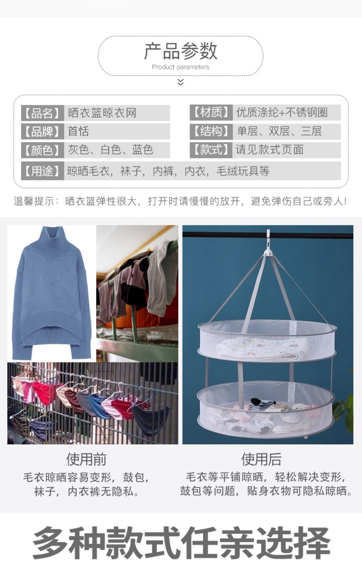 可折叠晒衣篮家用大容量晾晒羊毛衫毛衣平铺防变形多层晒衣网神器