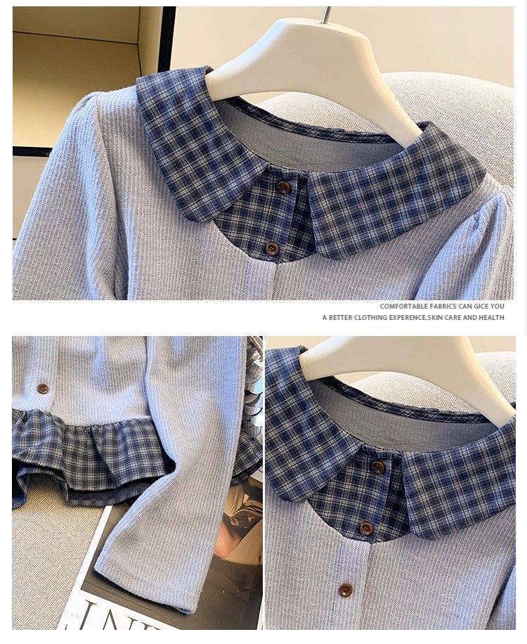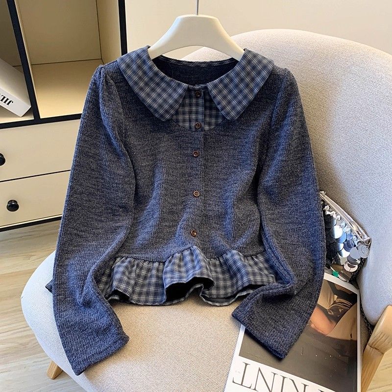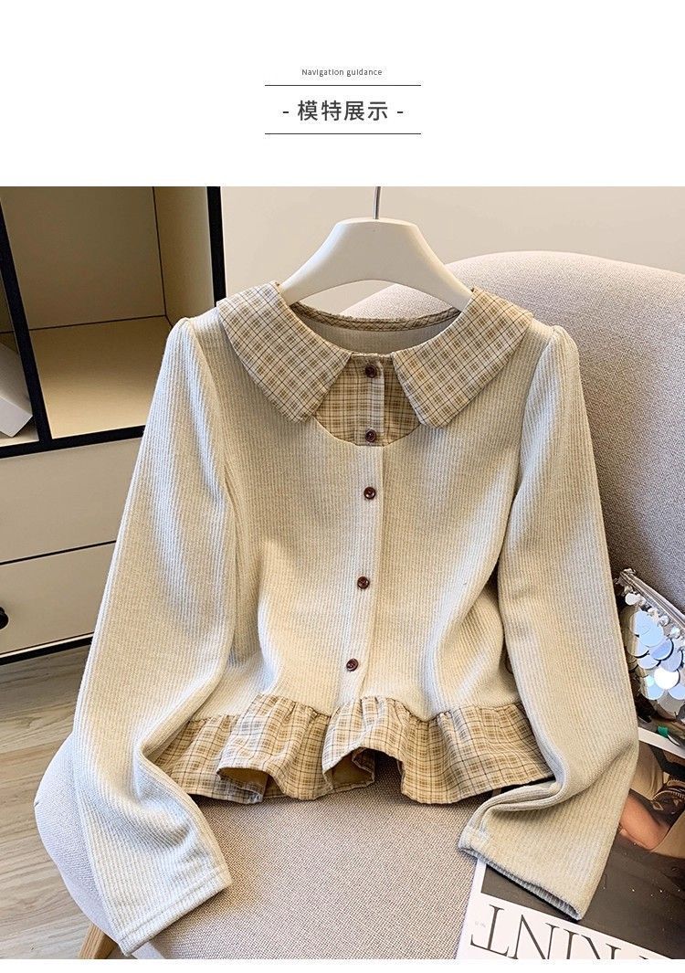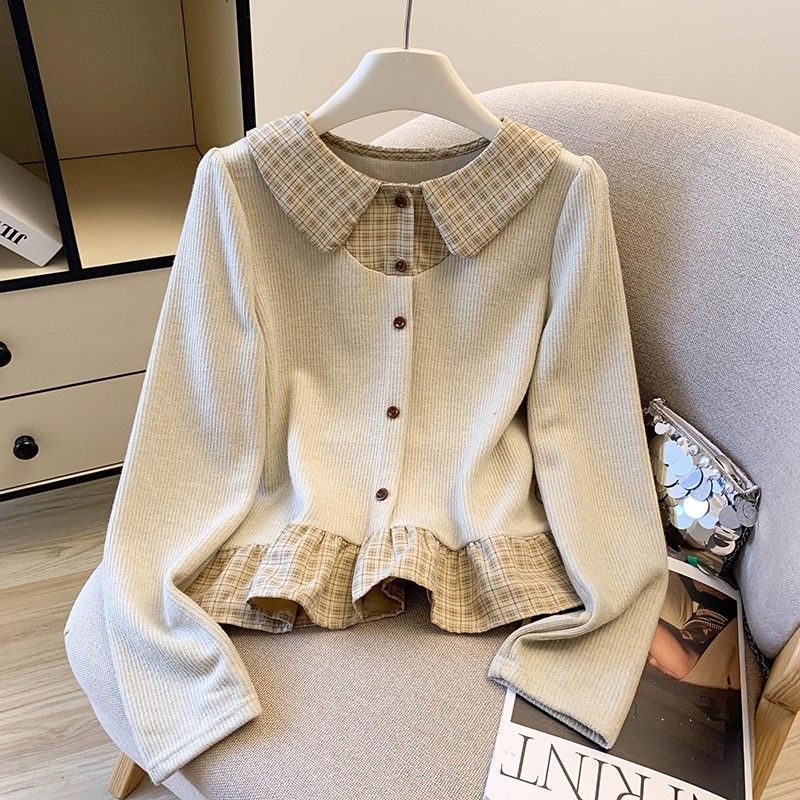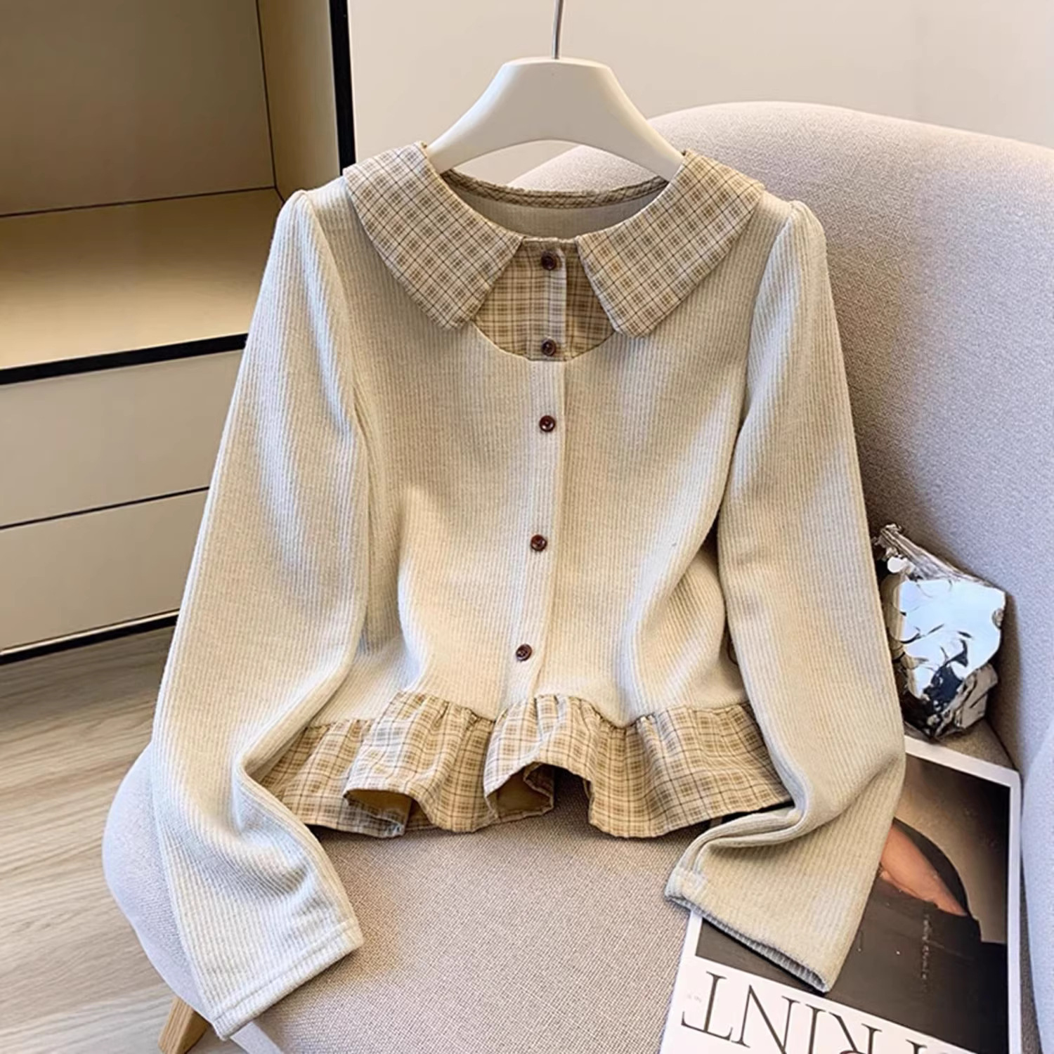 法式格子荷叶边衬衫上衣女秋冬气质宽松显瘦设计感假两件长袖格纹