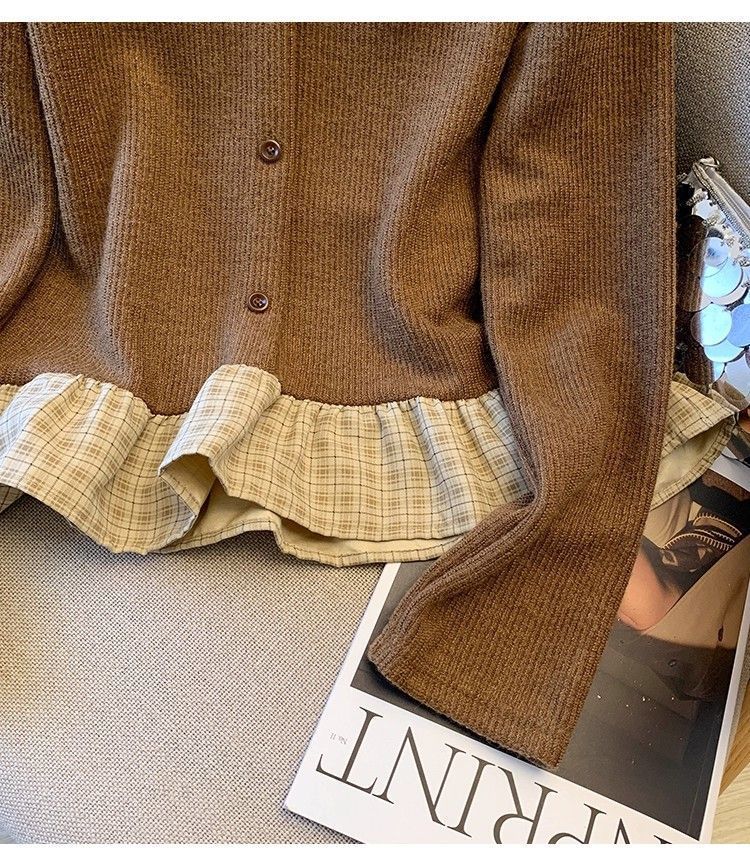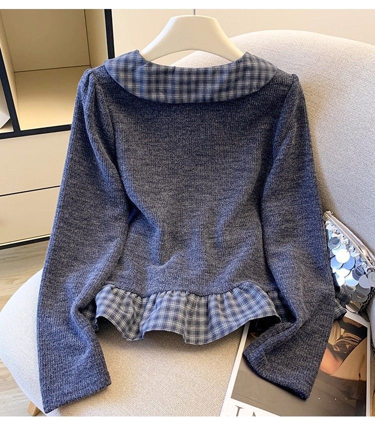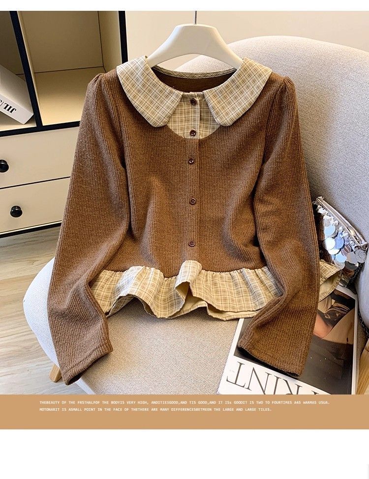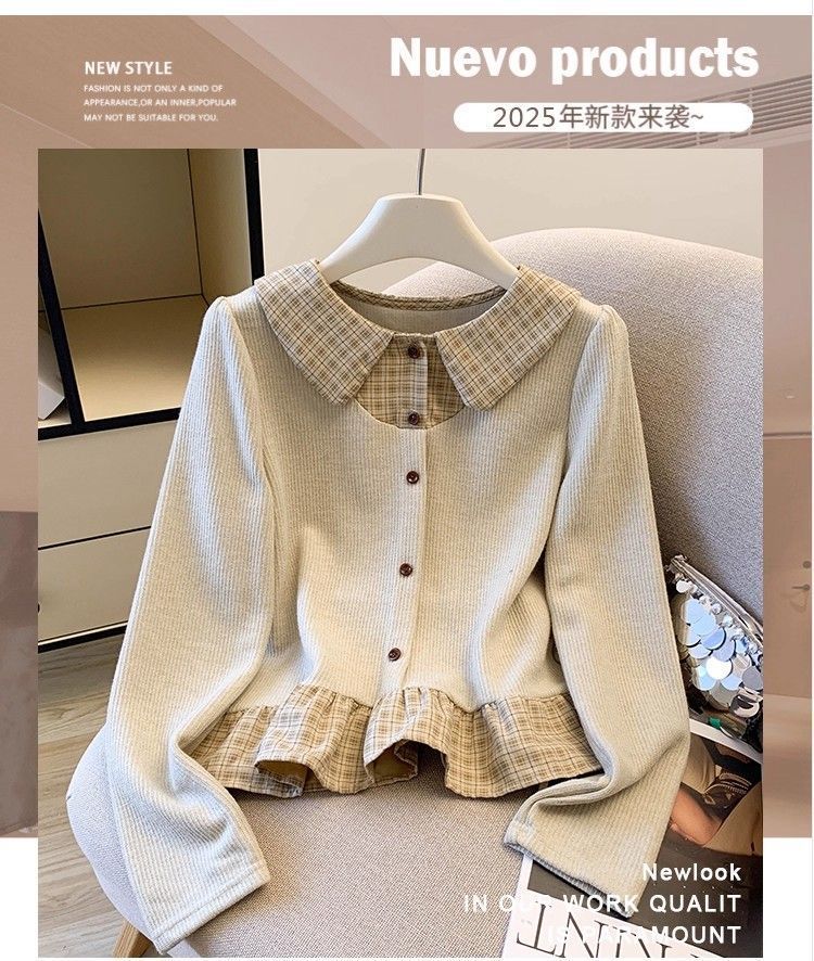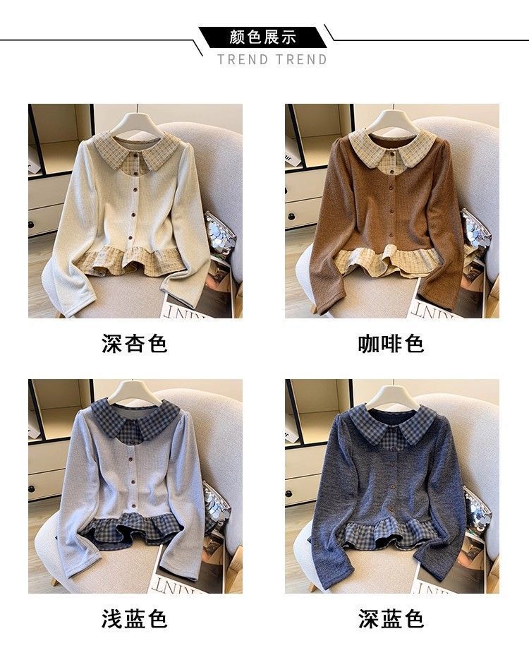 法式格子荷叶边衬衫上衣女秋冬气质宽松显瘦设计感假两件长袖格纹