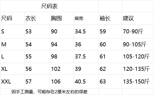 尺码 S(建议70-90斤),M(建议91-105斤),L(建议106-120斤),XL(建议121-135斤),XXL(建议136-150斤)