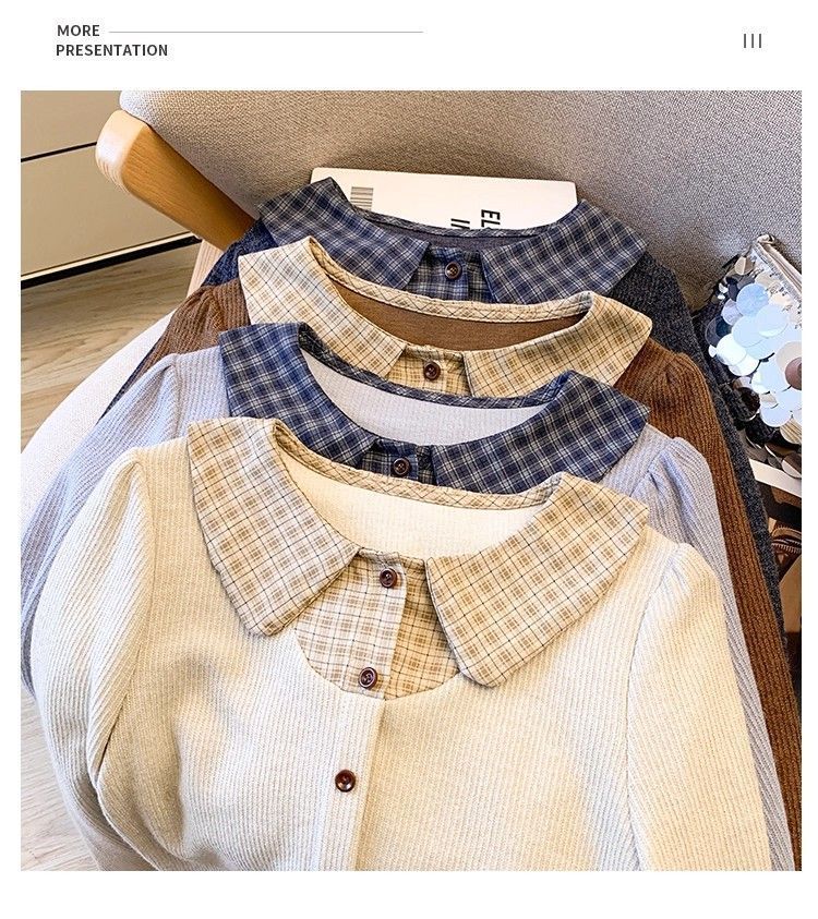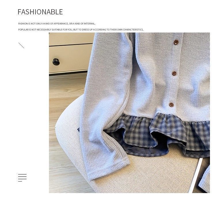 コストパフォーマンスchao竿 ~ デザイン感のある格子は偽のシャツtシャツの女性秋冬の中に上着のレースをつなぎ合わせます。