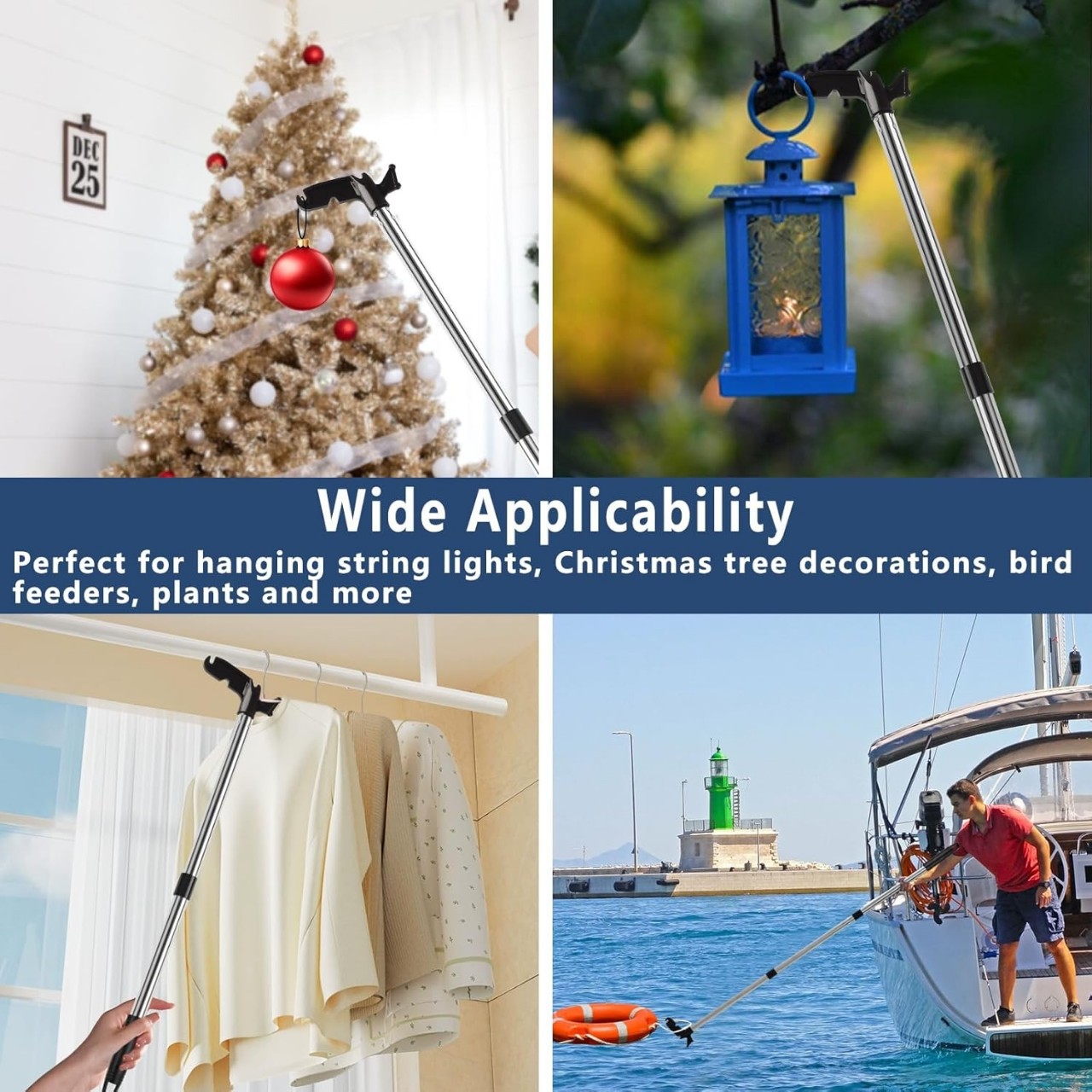 亚马逊热销天窗钩船只圣诞节彩灯悬挂撑衣杆家用拼接晾衣杆挂衣架