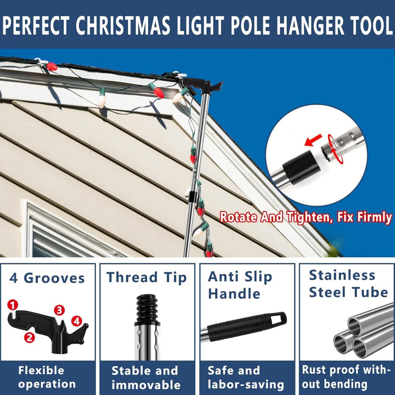跨境代发天窗圣诞节彩灯悬挂家用晾衣杆可拼接螺纹旋入式挂钩套装