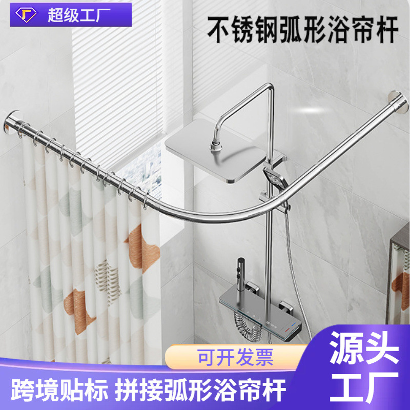 浴室用曲線型シャワーカーテンレール、穴あけ不要、半U字型伸縮式シャワーレール、ステンレス製扇形仕切りシャワーレール、物干し竿