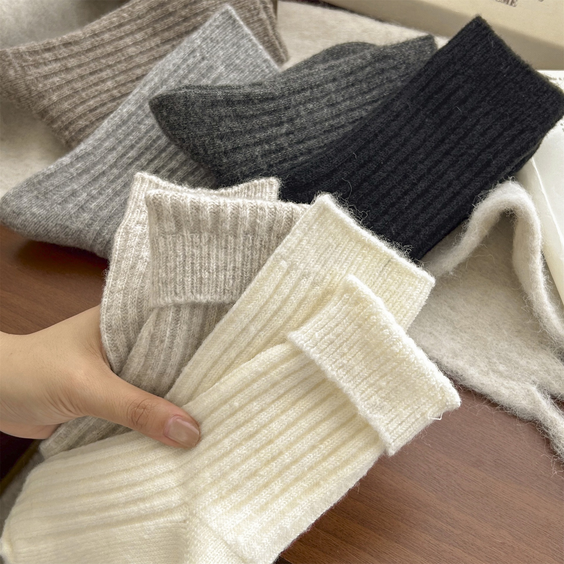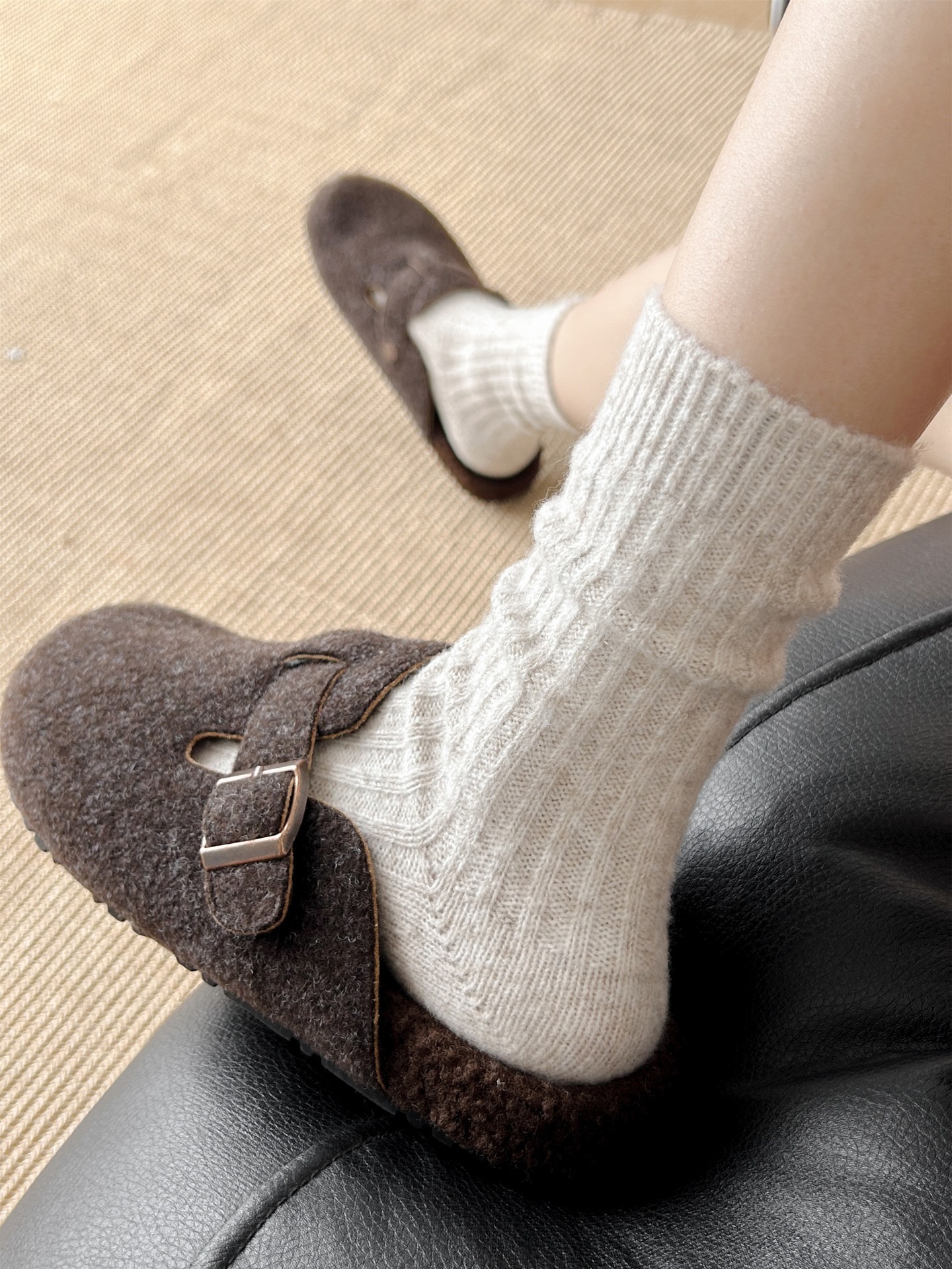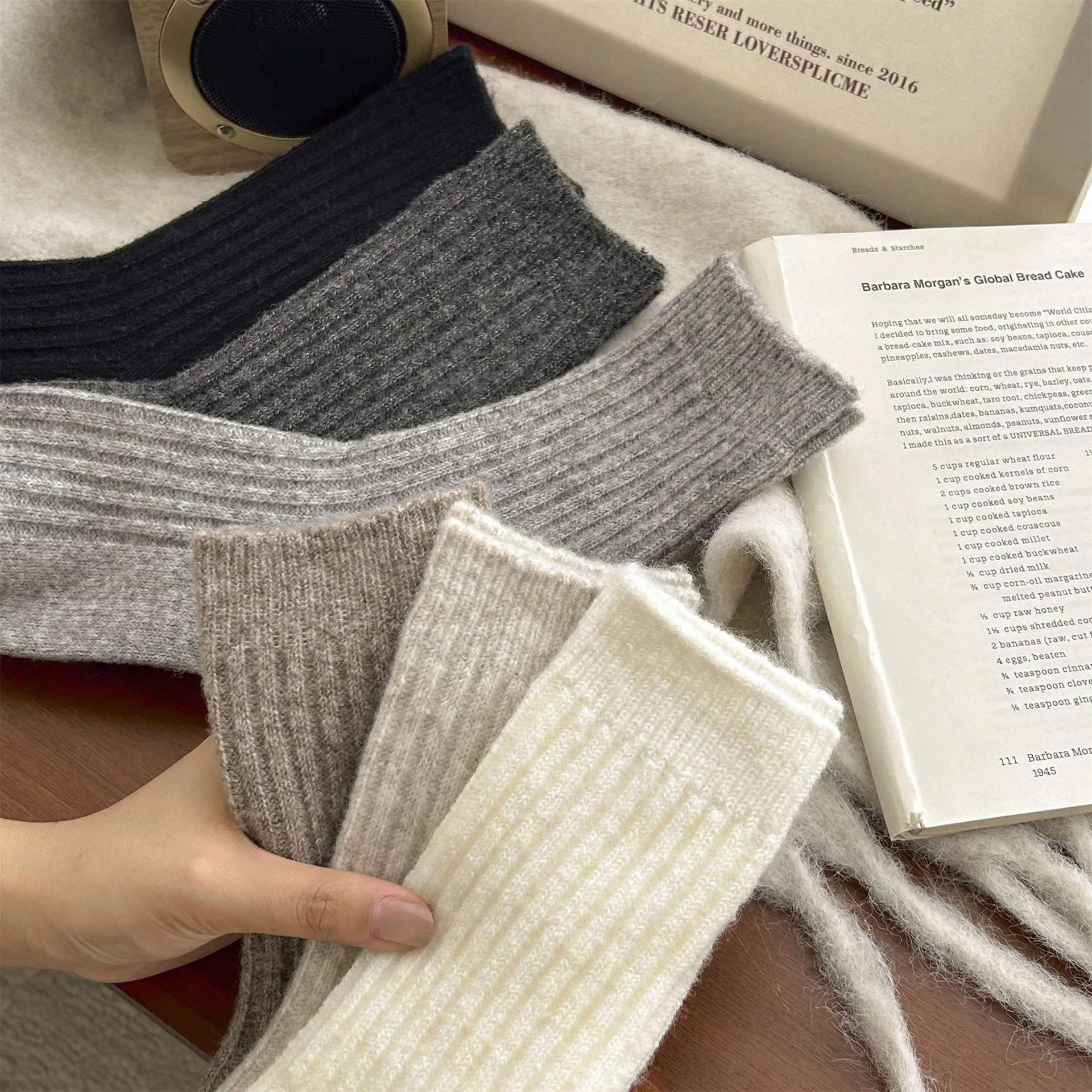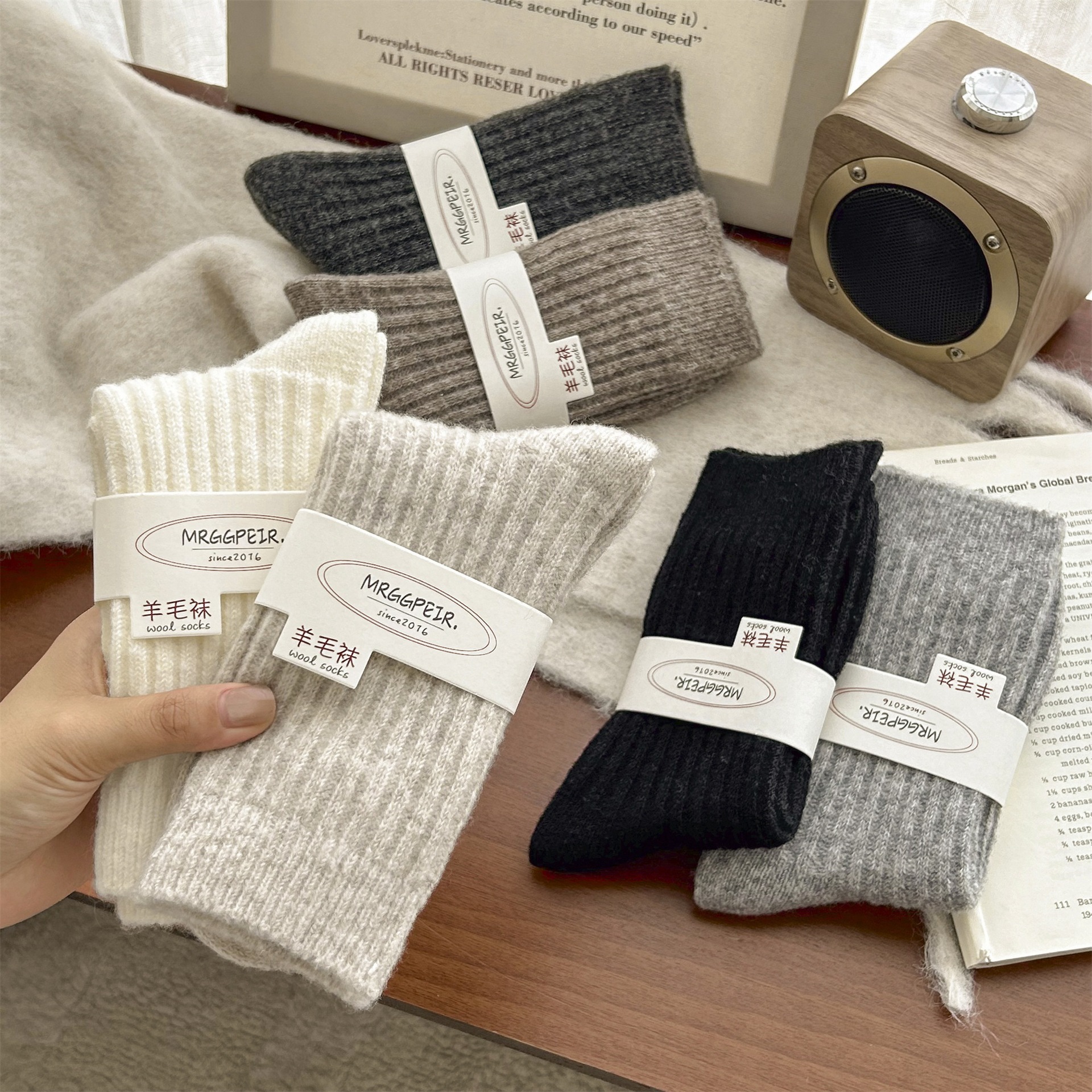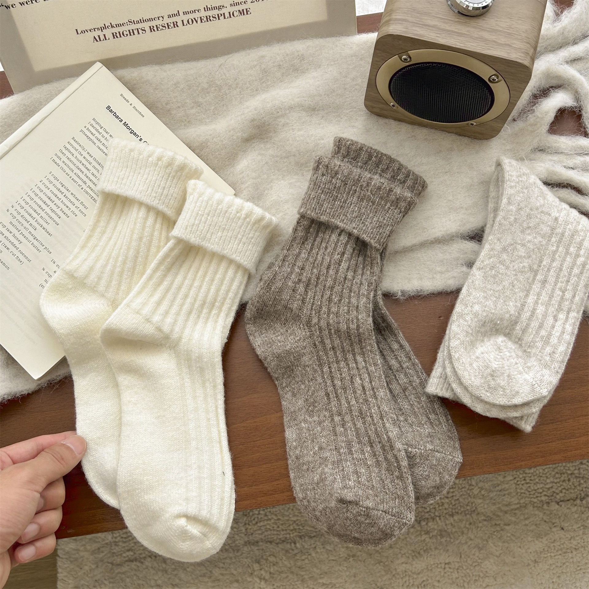 软糯灰粉羊毛袜子女~秋冬羊绒中筒袜加厚保暖日系甜美堆堆袜冬天
