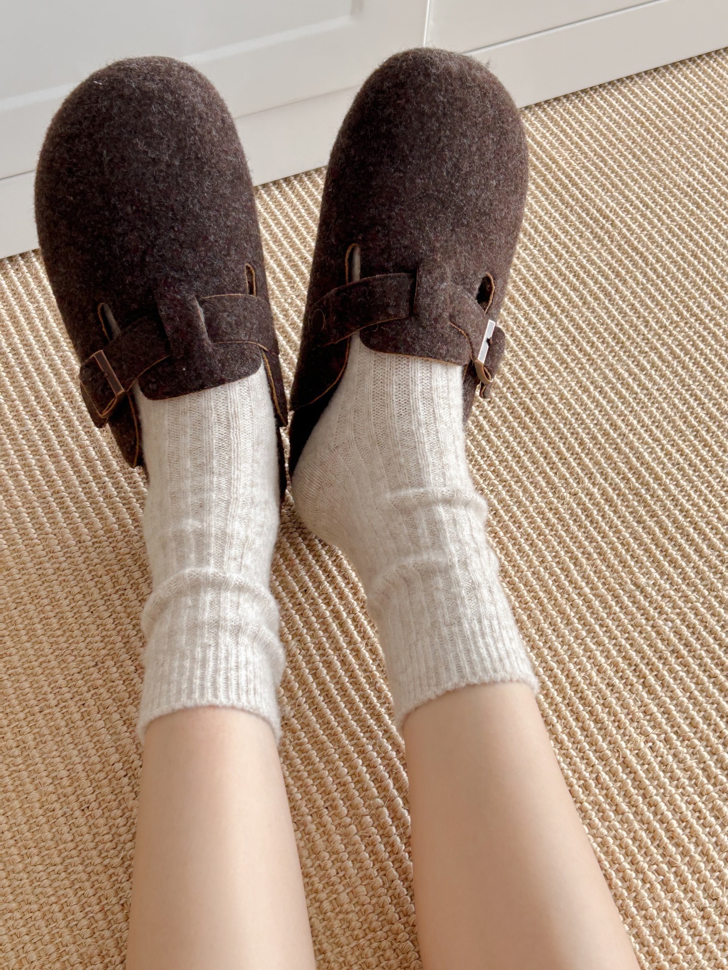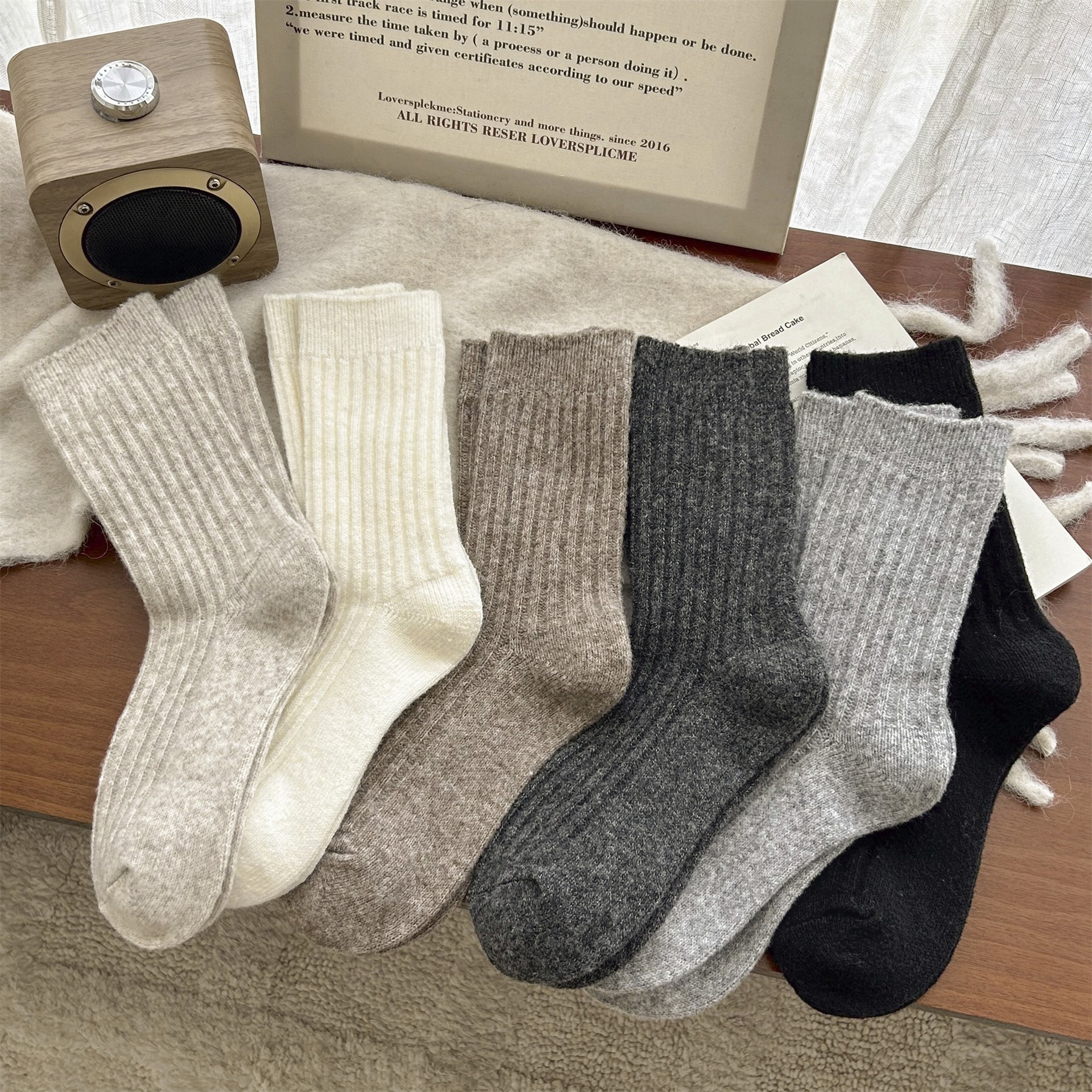 羊毛袜子女秋冬季美拉德中筒袜加厚保暖羊绒长袜冬天勃肯鞋堆堆袜