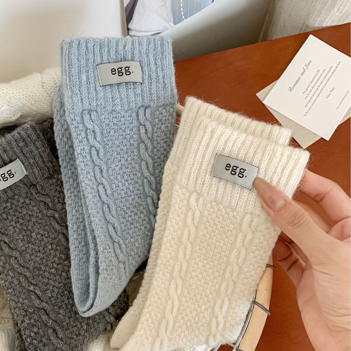 麻花高罗口不扎脚羊毛袜egg秋冬无骨堆堆袜子女保暖韩系ins中筒袜
