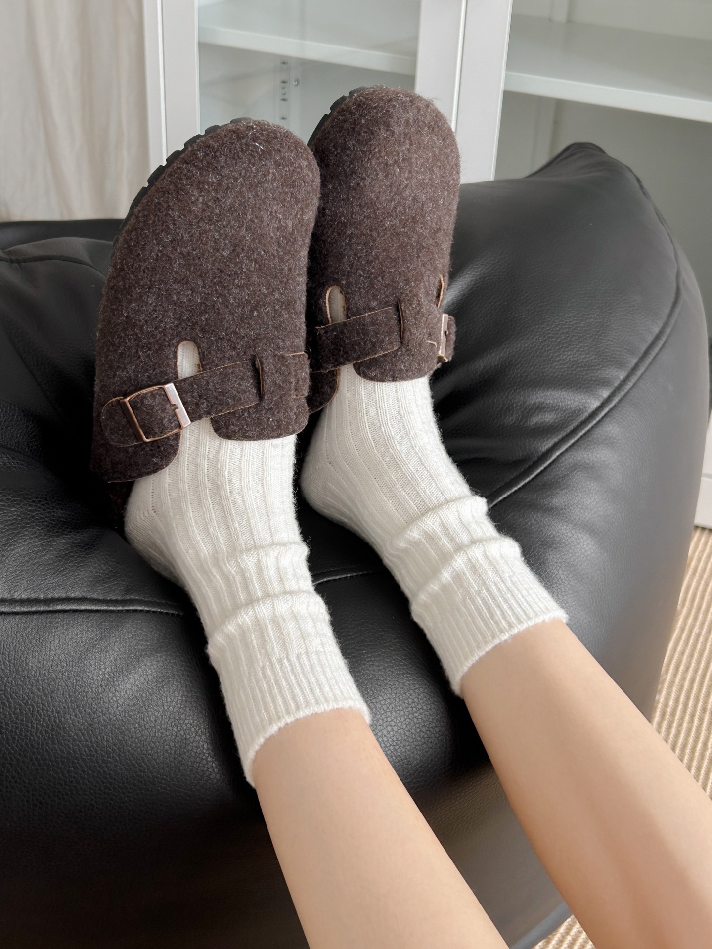 袜子女秋冬羊毛袜子女堆堆中筒袜日系纯色细抽条外穿加厚堆堆长袜